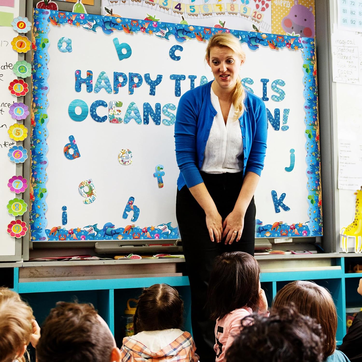 221 Pcs Bulletin Board Letters Round Alphabet Number Punctuation Symbol Combo Letter Cutouts Classroom Decoration for School Classroom Chalkboard Poster Board(Ocean Round)