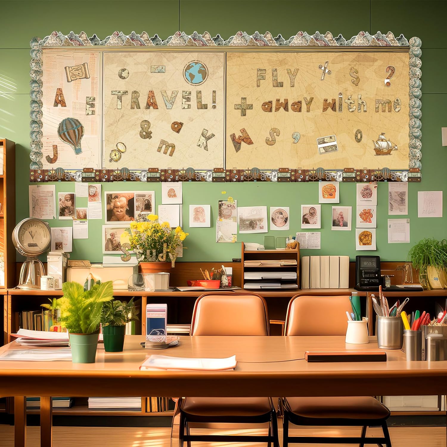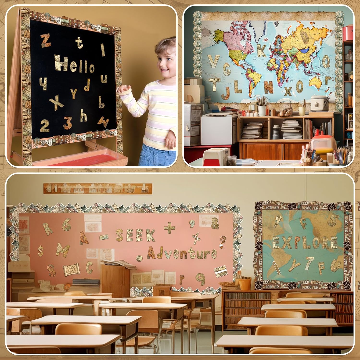 221 Pcs Bulletin Board Letters Round Alphabet Number Punctuation Symbol Combo Letter Cutouts Classroom Decoration for School Classroom Chalkboard Poster Board(Travel Around The World)
