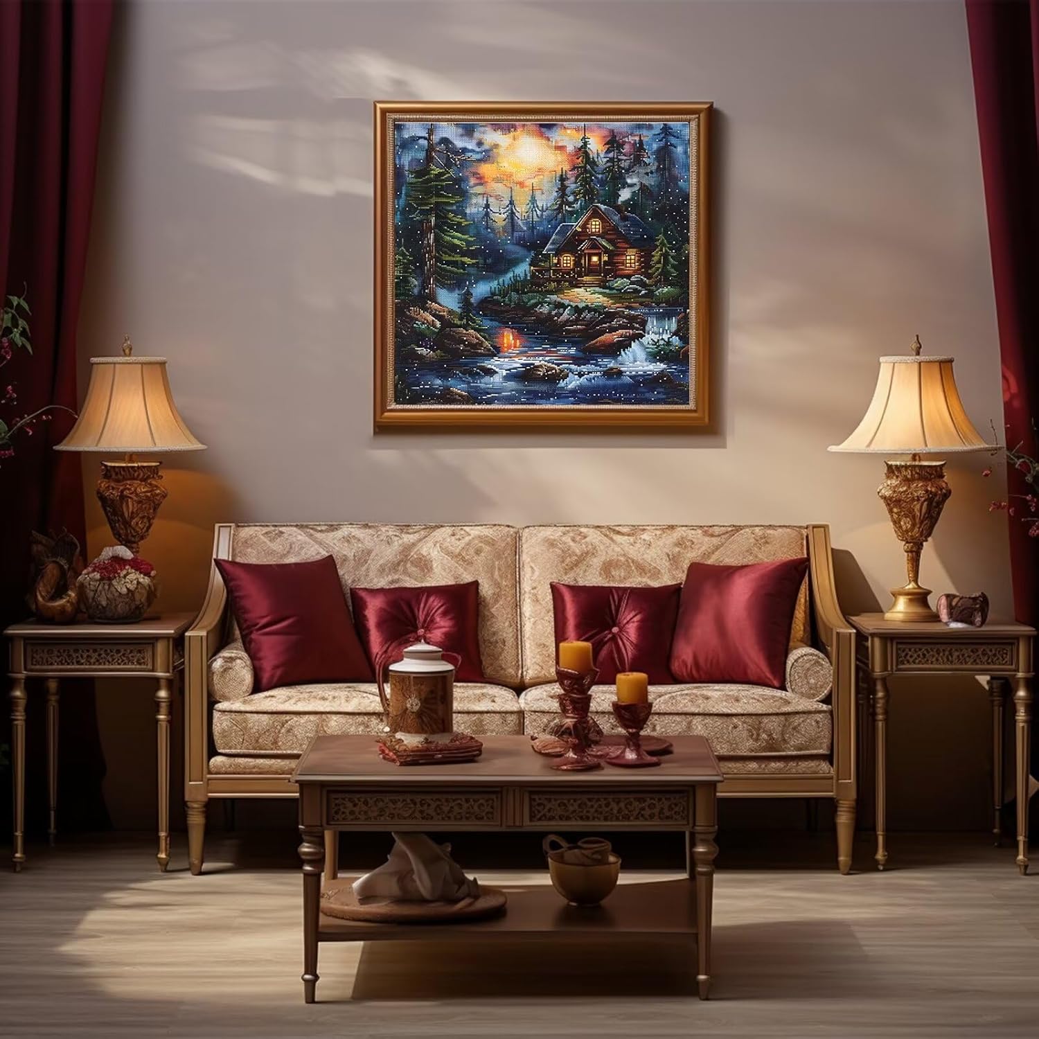 Xinpinzhou Creek Landscape 11ct Cross Stitch Kits, 11 CT Funny Pre Printed Counted Stamped Cross Stitch Embroidery Needlepoint Needlework Patterns Kits for Beginners Adults Crossstitch 40x40 cm
