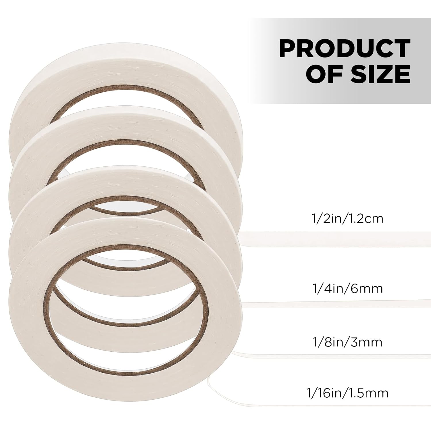 - Different Widths to Suit Your Needs: you will get 4 rolls of paint masking tape with different widths, including 1/16 inch/1.5 mm, 1/8 inch/ 3 mm, 1/4 inch/ 6 mm, and 1/2 inch/ 1.26 cm; Each masking tape length is about 55 yards; Different widths allow you the freedom to choose the right size that fits your needs, with enough length to give you a longer service life; The variety in size ensures that you can post the shape, length and width you want at will