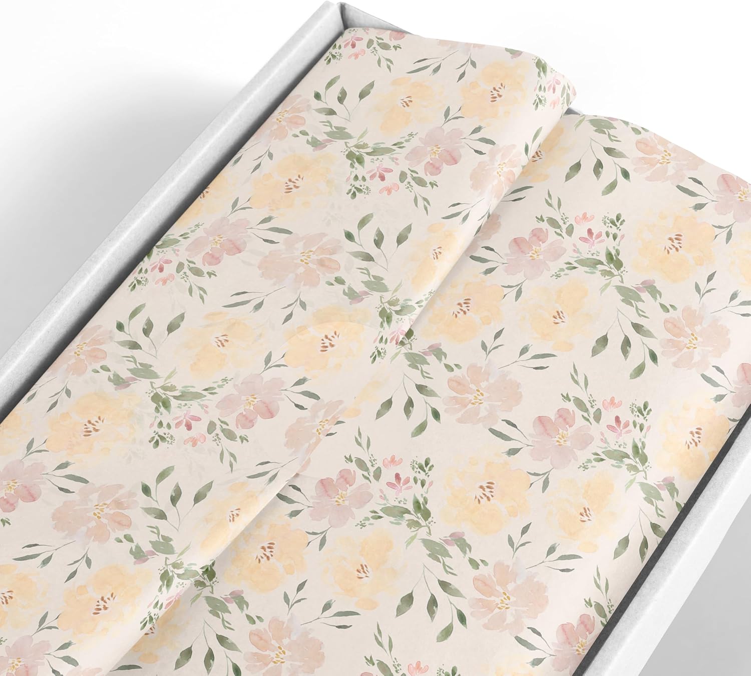 White Floral Tissue Paper for Gift Bags and Packaging, 28 Large Sheets Bulk Pack, White and Pink Flower Pastel, Bridal Wrapping Paper for Wedding or Girl Baby Shower, decoupage, stuffing paper