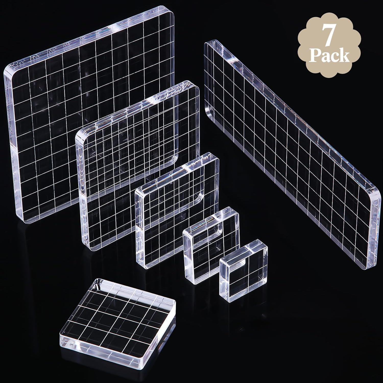 - Package Content: you will get 7 pieces of acrylic stamp blocks in different sizes that are 2.5 x 2.5 cm, 3.1 x 3.1 cm, 3.8 x 3.8 cm, 5 x 5 cm, 7.5 x 7.5 cm, 10 x 10 cm, 15 x 5 cm; Each one is 0.31 inches/ 0.8 cm in thickness meeting your needs for applying different stamps