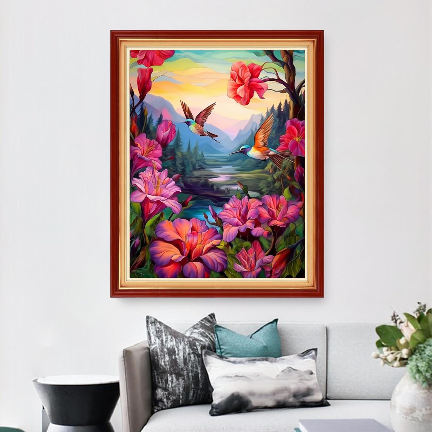 Dimensean Stamped Cross Stitch Kits Full Range of Embroidery Patterns Starter Kits for Beginners Adult or Kids DIY Cross Stitches Needlepoint Kits 11CT-Hummingbird Flowers 16x20 inch