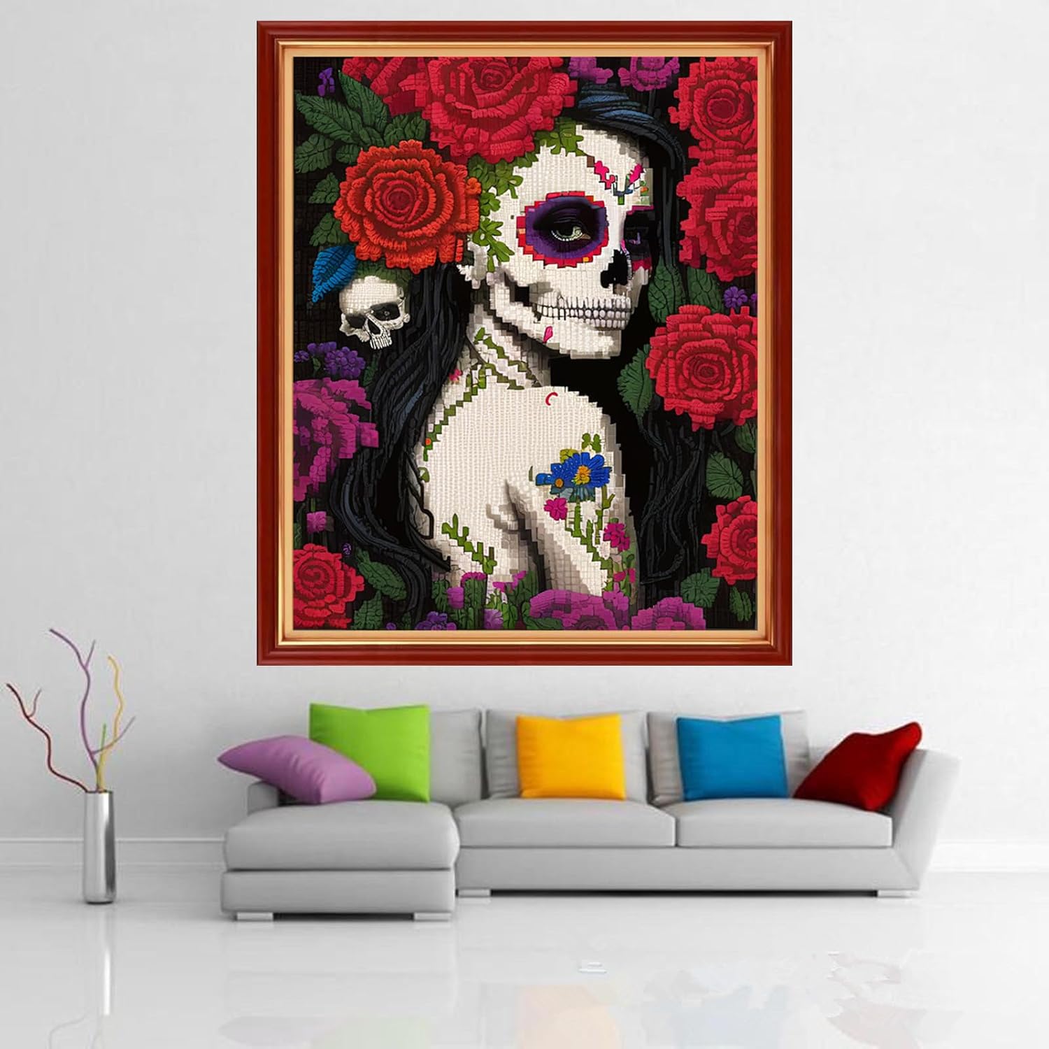 Dimensean Stamped Cross Stitch Kits Full Range of Embroidery Patterns Starter Kits for Beginners Adult or Kids DIY Cross Stitches Needlepoint Kit 11CT-Flower Skeleton Girl 16x20 inch