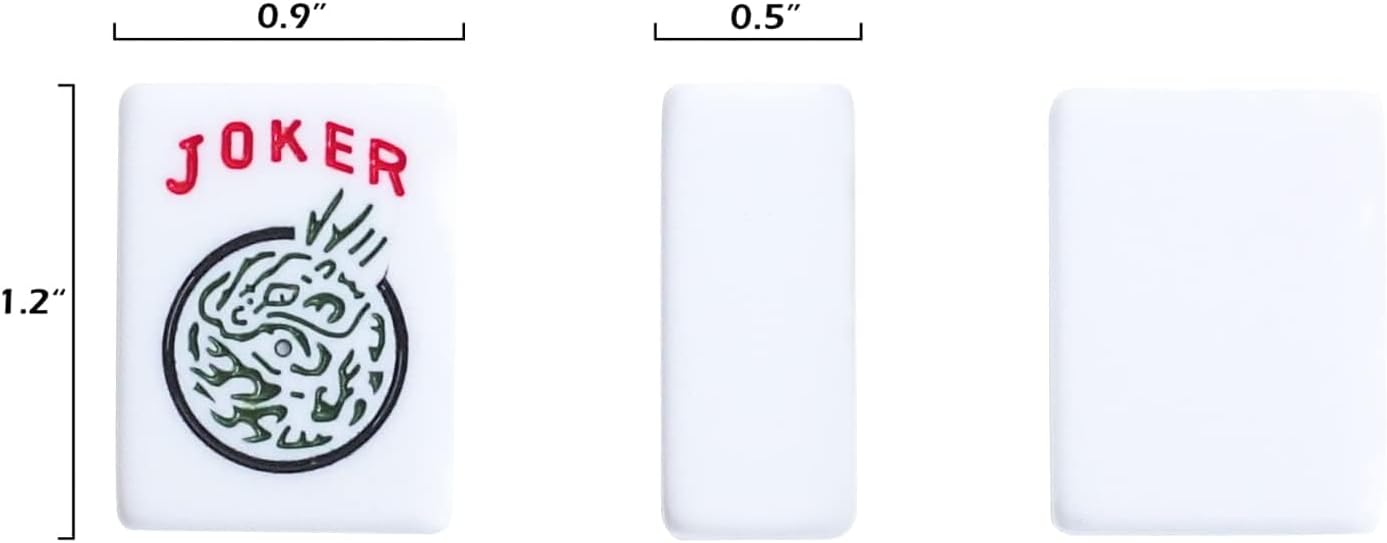- 166 SCRATCH-RESISTANT TILES: The completed mahjong set include 166 premium tiles (36 Dots, 36 Bams, 36 Cracks, 12 Dragons, 16 Winds, 16 Flowers, 10 Jokers and 4 Blank Spares, each tile measures 1.2β Γ 0.9β Γ 0.5β), also we have two nice tile trays with lid to better store the tiles.