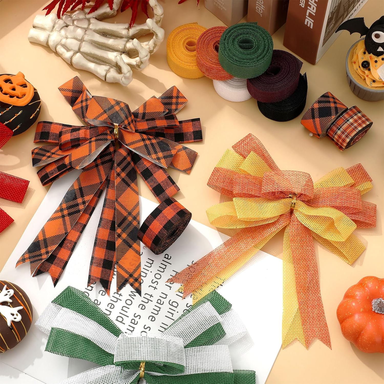 - DELICATE DESIGN: Our ribbons adopts solid color design or printed with plaid, matching with the theme colors of Halloween, delicate and eye-catching, which can meet your needs for holiday decoration and crafts.