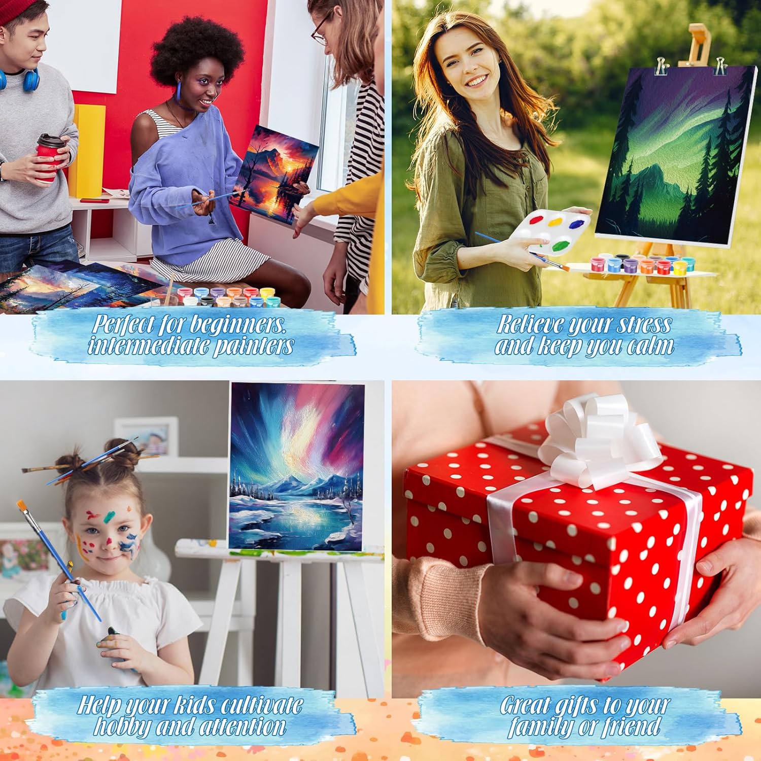 - Different Styles: our drawn canvas offer a variety of 12 different astronomical landscape themed styles to choose from; This design can make sure there's a style that fits your taste and preference; Whether you're a beginner, a paint and sip going enthusiast, or an expert painter, our painting canvases with pictures to paint will help you craft stunning artworks effortlessly; Get ready to dive into the world of colors and creativity with our pre drawn canvas paint kit