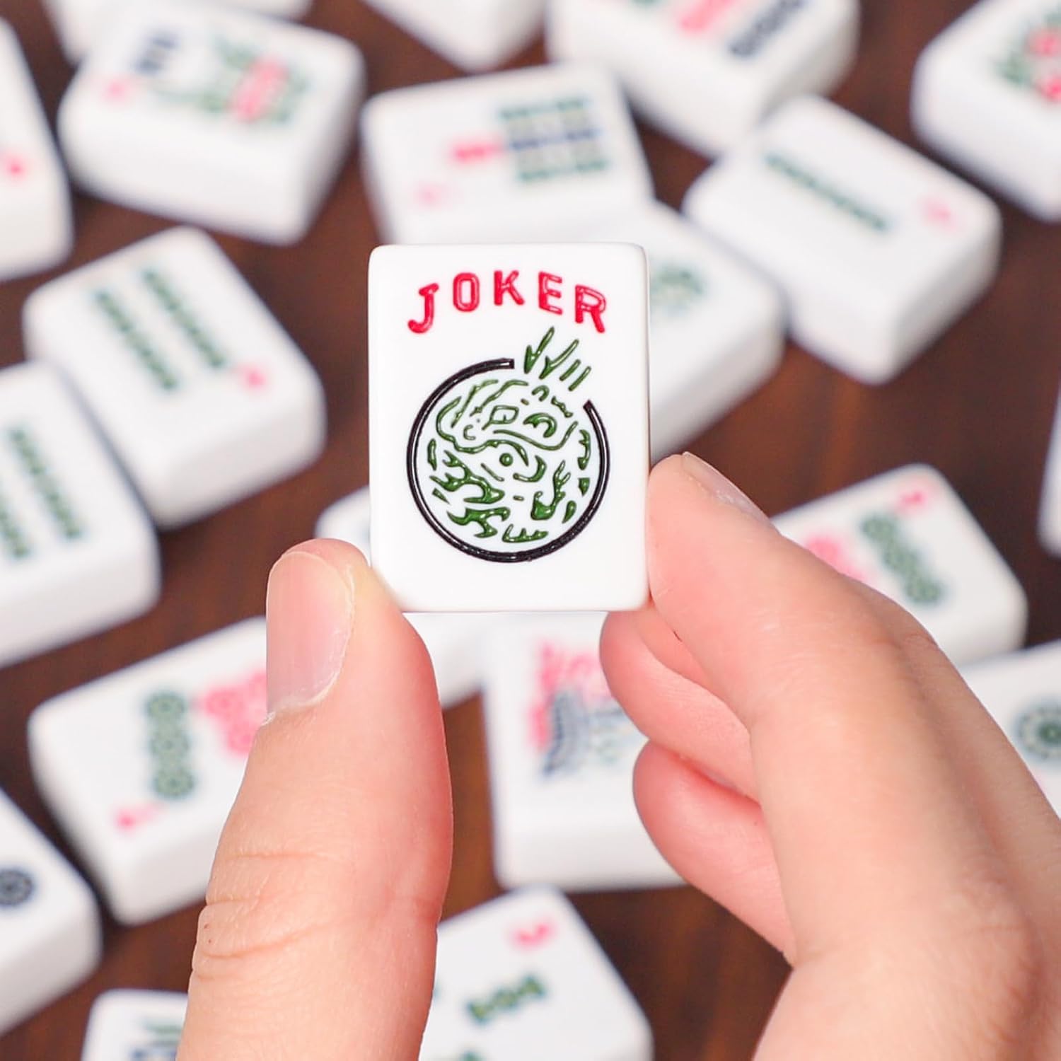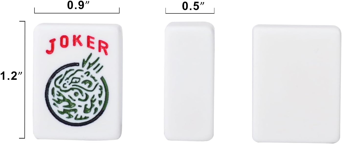 - Package Includes:Our American mahjong set includes 166 fully engraved tiles: 36 Dots, 36 Bams, 36 Cracks, 12 Dragons, 16 Winds, 16 Flowers, 10 Jokers, and 4 Blank Spares. Each tile measures 1.2" Γ 0.9" Γ 0.5". Additionally, the set comes with 3 dice, 100 money chips, a bettor, and a copy of the Mahjong manual. Please note that the small accessories are kept in the inside small pocket.