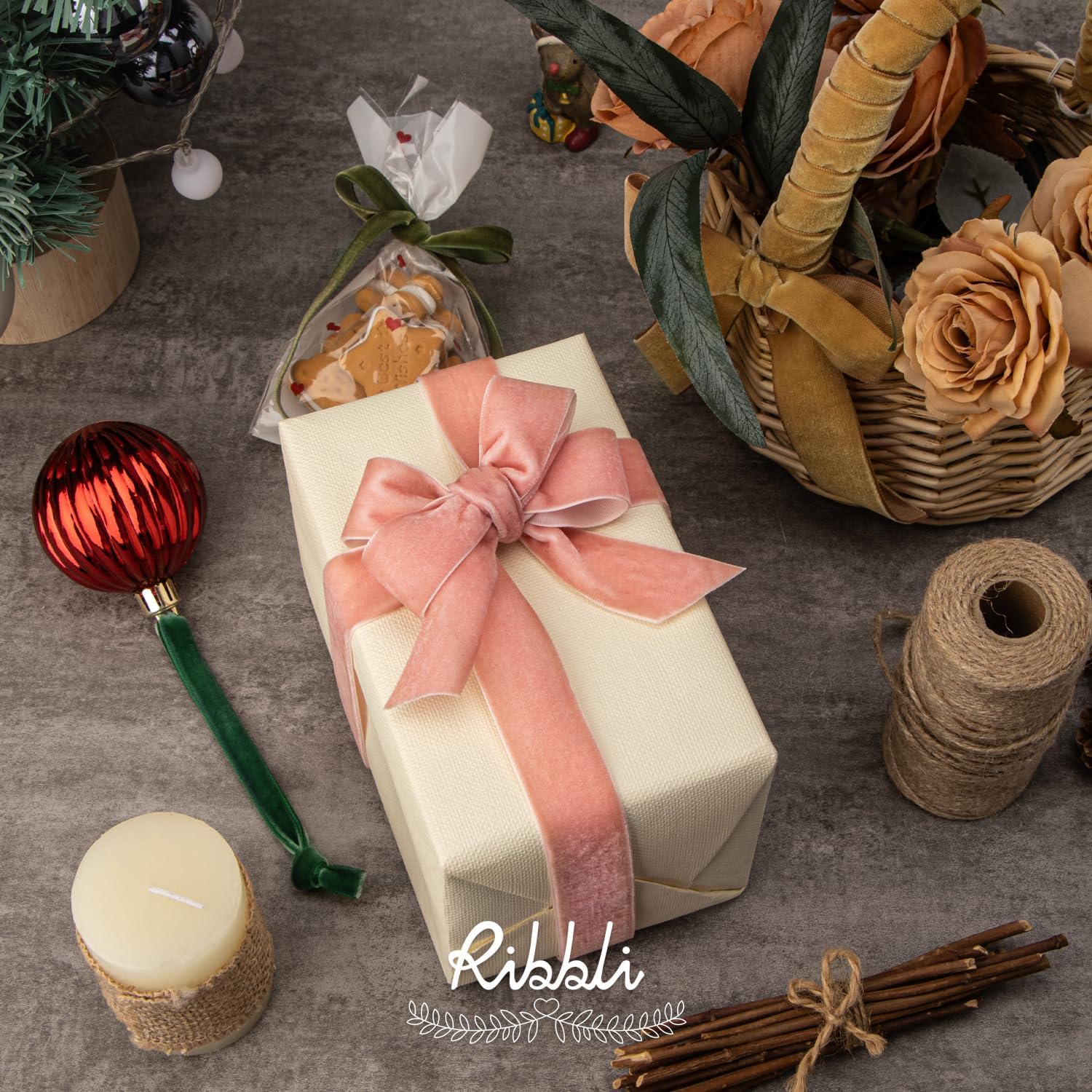 Ribbli Rose Gold Velvet Ribbon 1 Inches Continuous10 Yard Spool Dusty Pink Christmas Ribbon for Gift Wrapping Crafts Home Decor