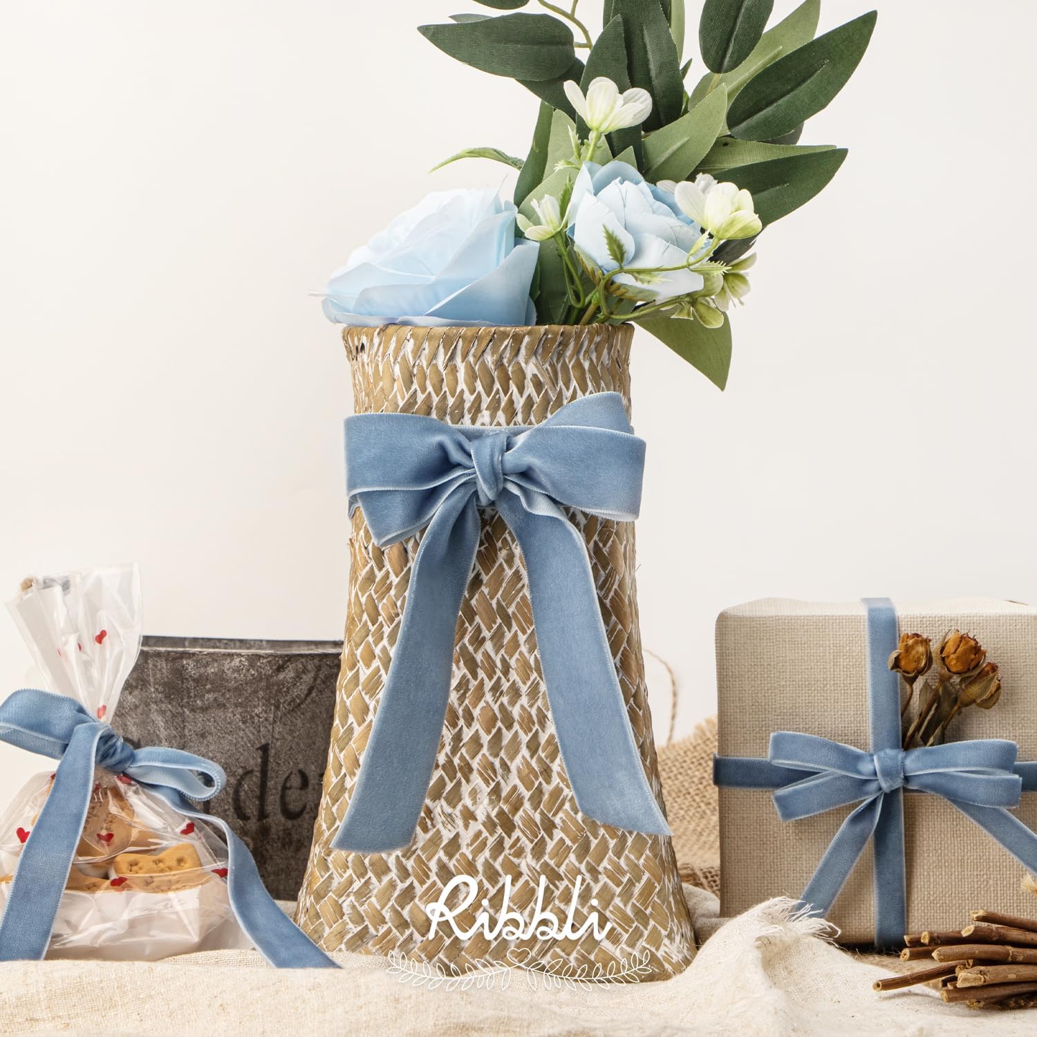 Ribbli Dusty Blue Velvet Ribbon 5/8 Inches Continuous10 Yard Spool Blue Christmas Ribbon for Gift Wrapping Crafts Home Decor