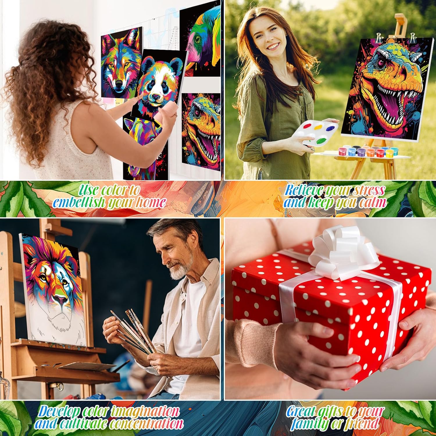 - Different Styles: our drawn canvas offer a variety of 12 different colorful animals themed styles to choose from; This design can make sure there's a style that fits your taste and preference; Whether you're a beginner, a paint and sip going enthusiast, or an expert painter, our painting canvases with pictures to paint will help you craft stunning artworks effortlessly; Get ready to dive into the world of colors and creativity with our pre drawn canvas paint kit