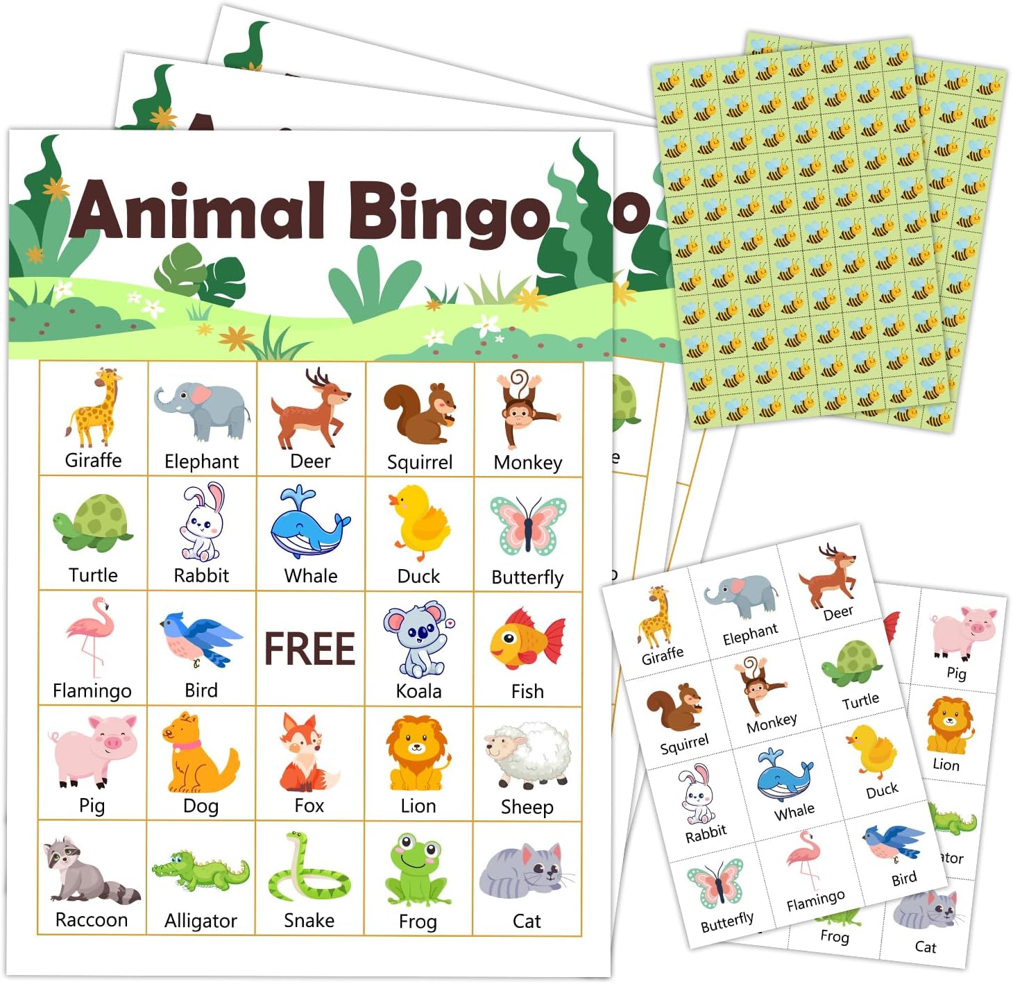 - Package Include: This Jungle Animal Party Bingo Game Set includes 24 different kinds of bingo cards, 2 calling cards and 7 bingo marker cards.