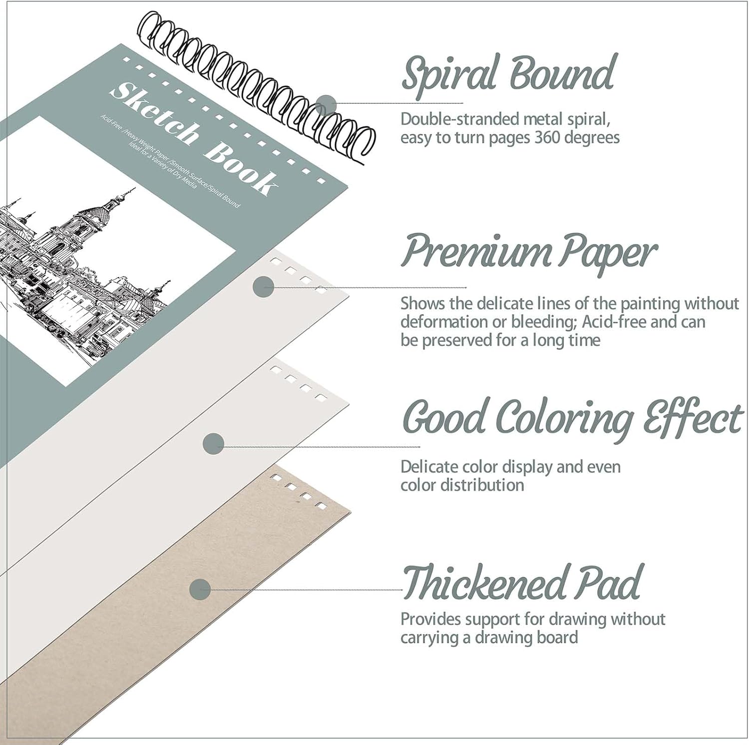 - 【Hardcover Durability and Portability】The reinforced backing on this small sketchbook replaces a separate drawing board. Matte laminated cover resists scratches and spills - perfect for park sketching, travel journals, or art class assignments