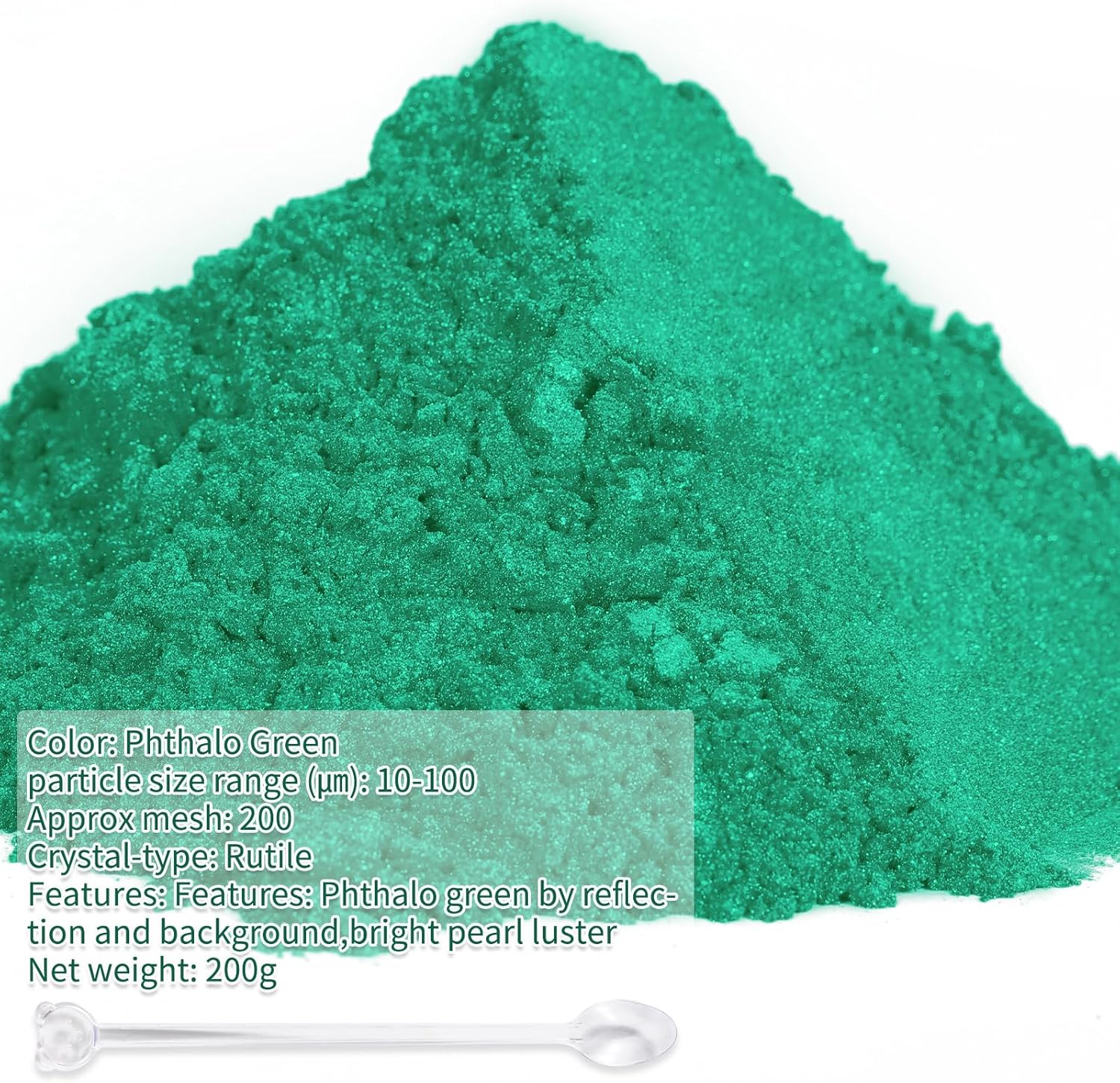 - 【Super Surprise Color Combination】:Our Phthalo Green mica powder net weight is 200g/7.05oz large bottle. Just a little mica powder can bring a very gorgeous effect.With its shiny surface,this mica powder pigment provides a gorgeous and lasting effect for your artistic creation.
