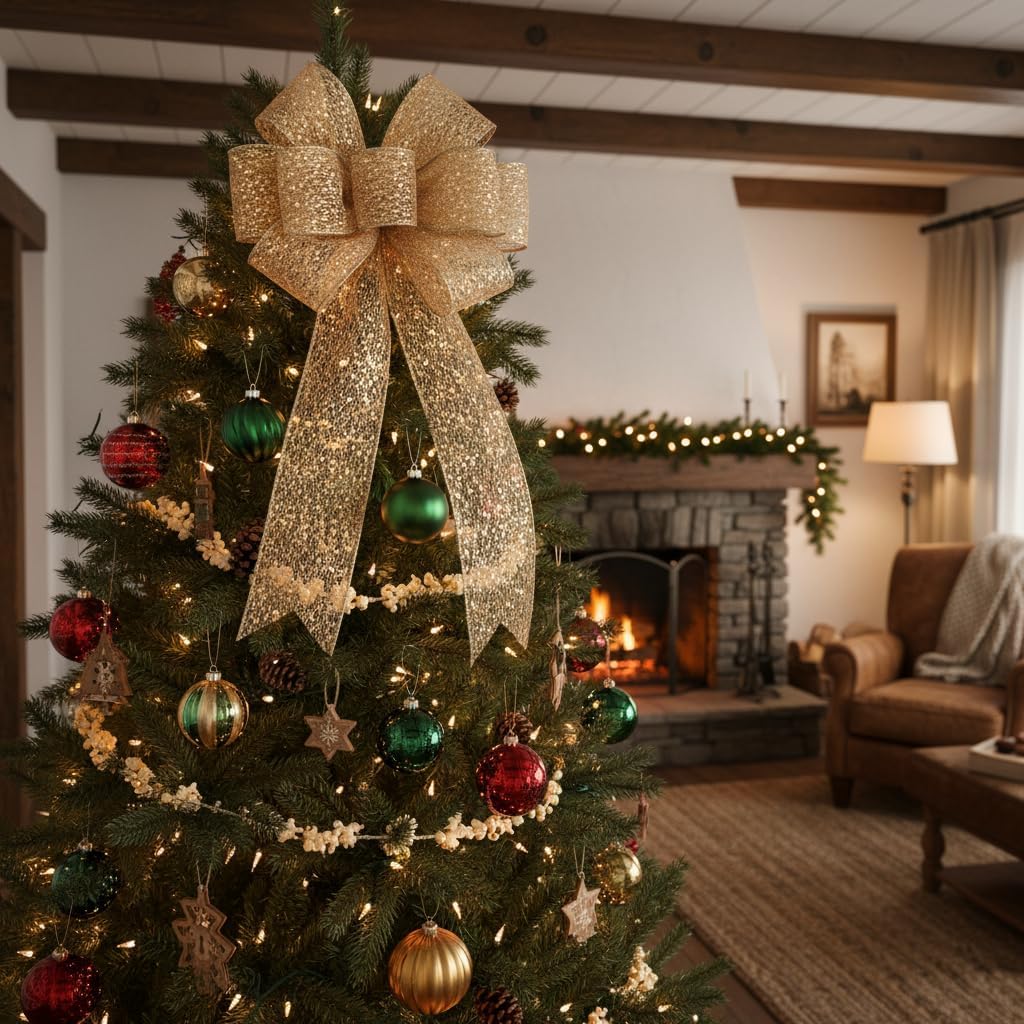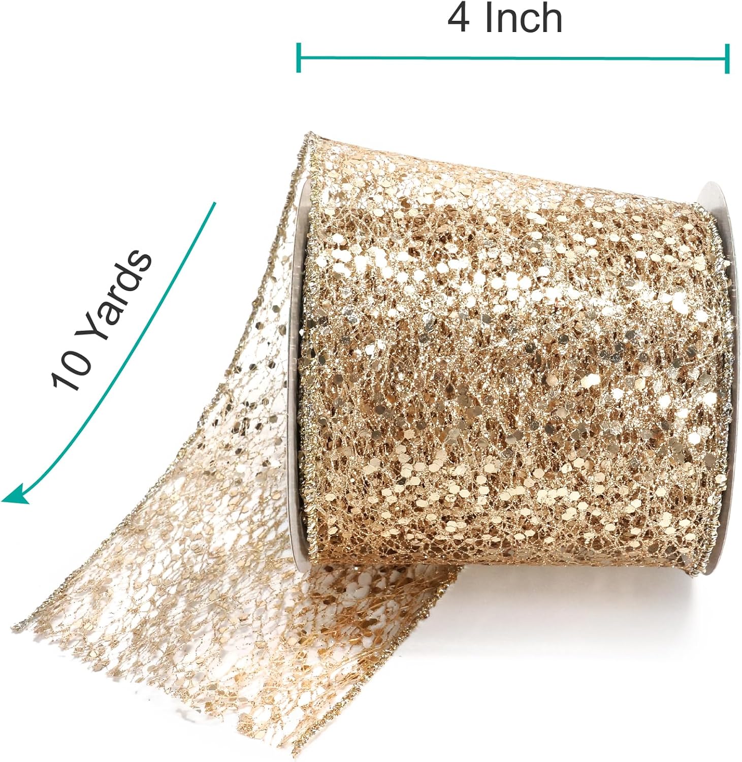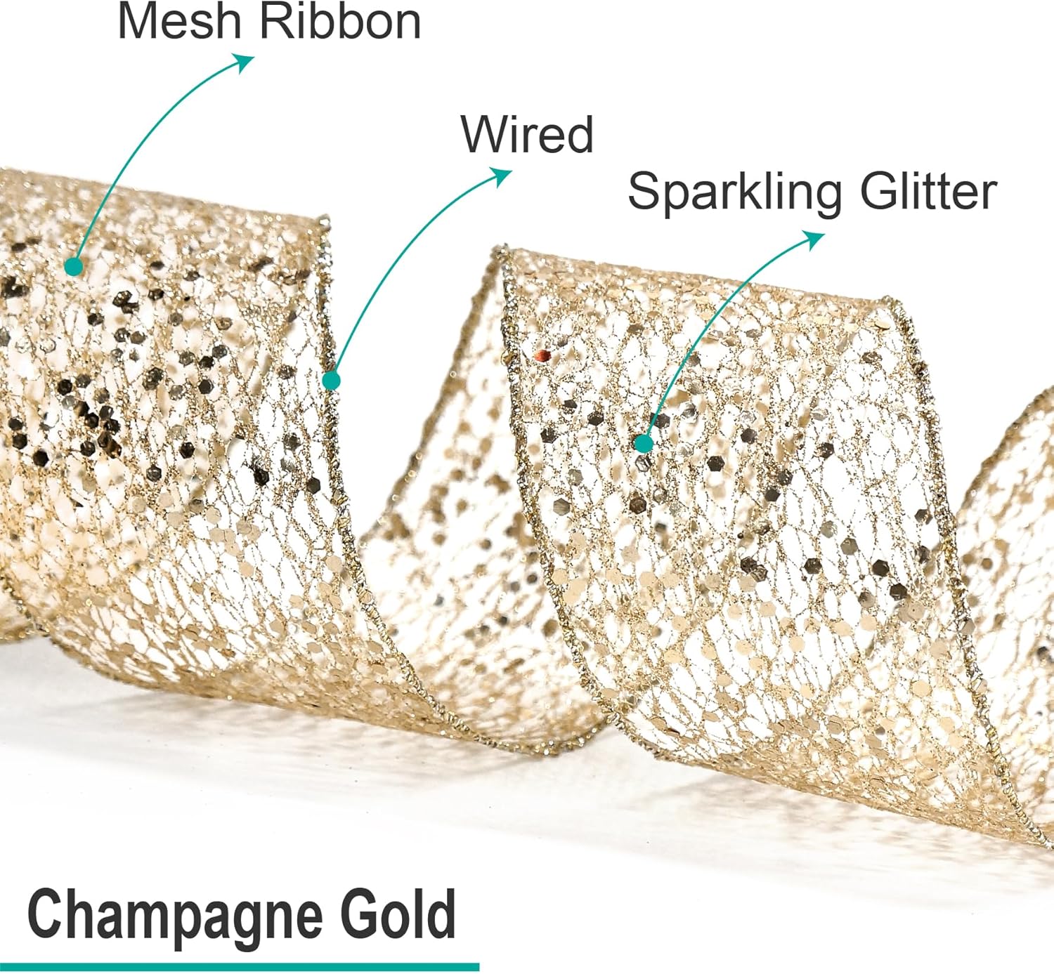 - GREAT WORKMANSHIP - Our Sparkling Glitter Mesh Wired Ribbon 4" has a density weave so you wonโt find any loose edges. You wonโt find any fraying ends or loose strings anywhere, making our Sparkling Glitter Mesh Wired Ribbon 4" Champagne Gold color perfect for high-end and professional DIY works and Crafts.