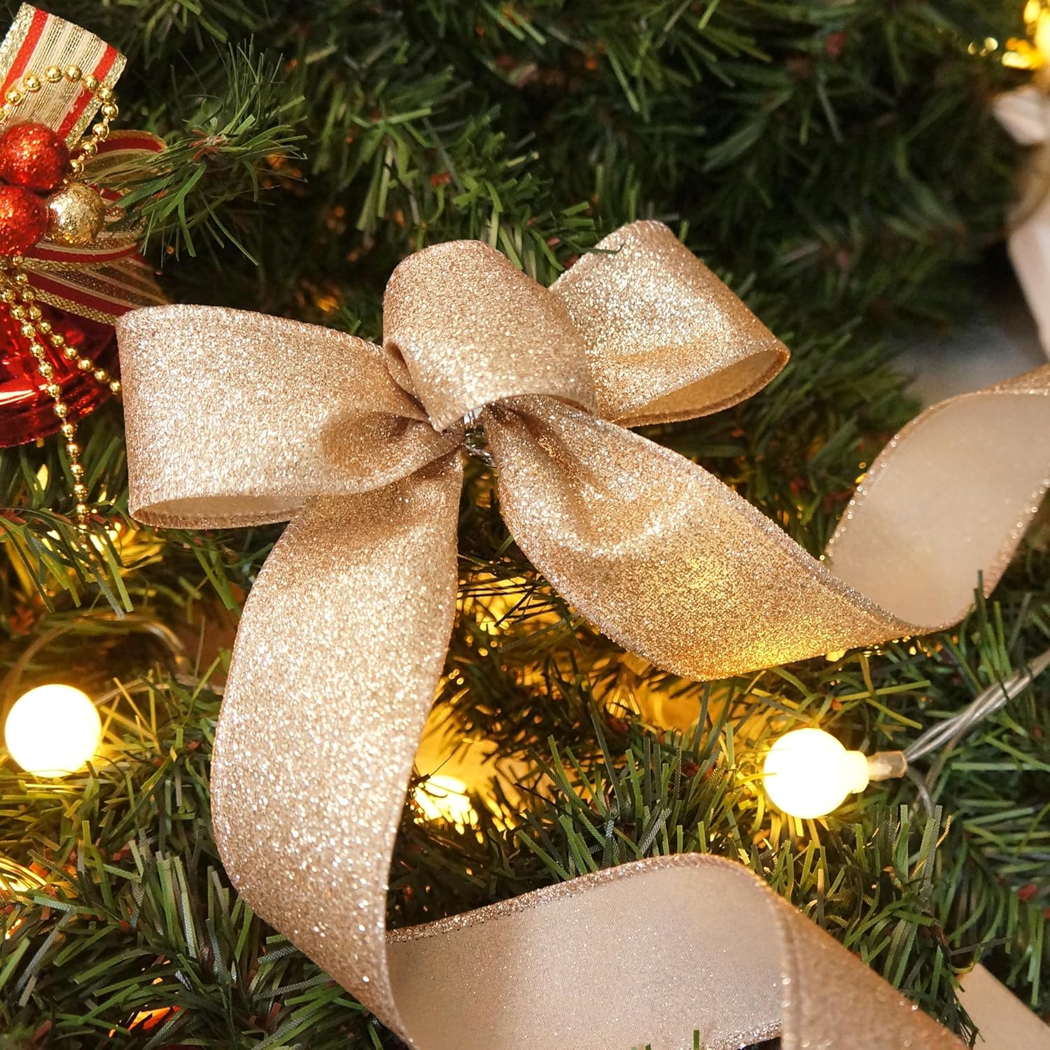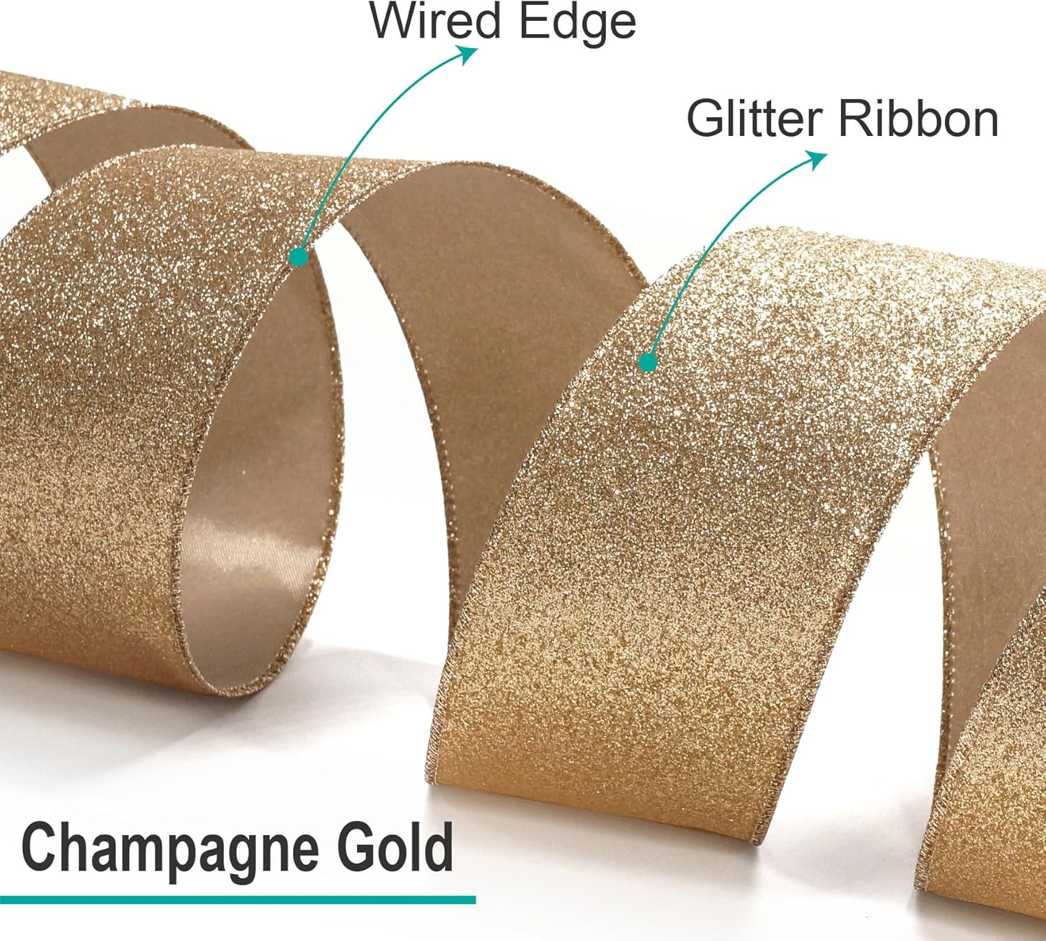 - OCCASION - Our Glitter Wired Ribbon 1.5" Champagne Gold color are very easy to match and suitable for birthdays, party decorations, Mother's Day, Valentine's Day, Easter, Independence Day, Halloween, Christmas, New Year's gifts, Wedding decorations, Baby showers etc.
