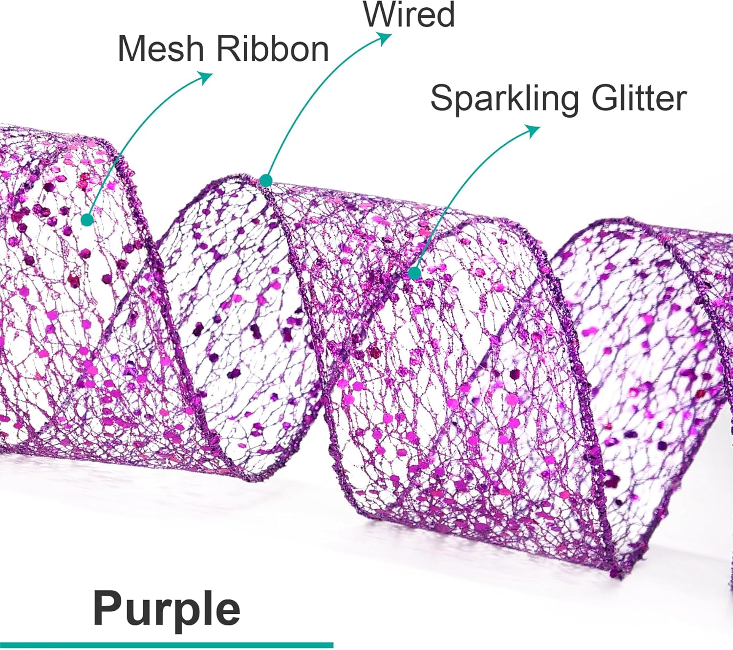 - A MUST-HAVE FOR DECORATION - Don't miss it if you're choosing a Sparkling Glitter Mesh Wired Ribbon 4" Purple for your decoration! Our ribbon works perfectly for decorating and adding finishing touch to your craft projects. Simple and elegant.