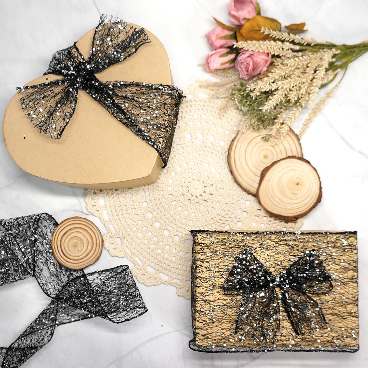 - OCCASION - Our Sparkling Glitter Mesh Wired Ribbon 6" Black color are very easy to match and suitable for birthdays, party decorations, Mother's Day, Valentine's Day, Easter, Independence Day, Halloween, Christmas, New Year's gifts, Wedding decorations, Baby showers etc.