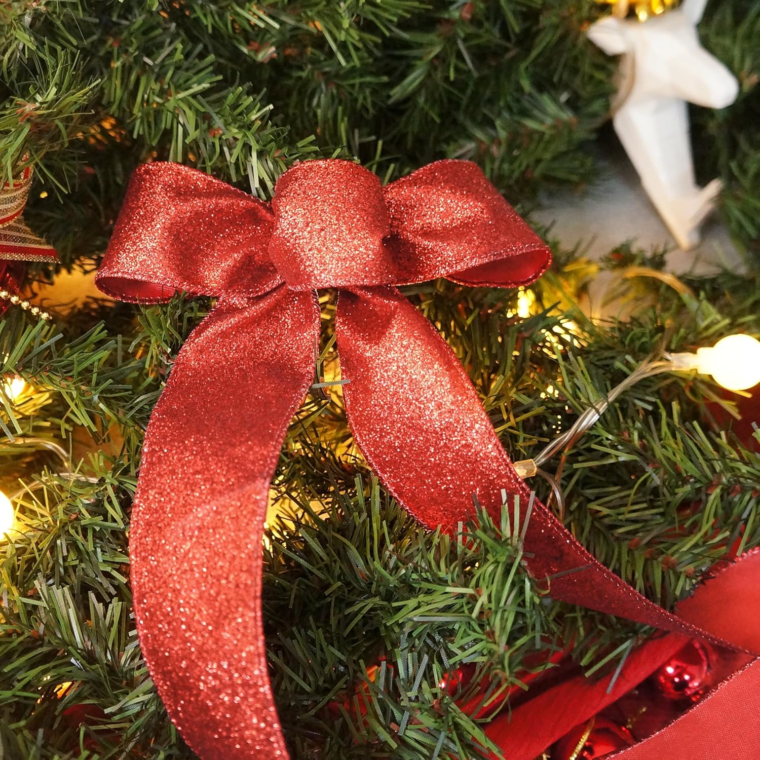 - A MUST-HAVE FOR DECORATION - Don't miss it if you're choosing a Glitter Wired Ribbon 1.5" red for your decoration! Our ribbon works perfectly for decorating and adding finishing touch to your craft projects. Simple and elegant.
