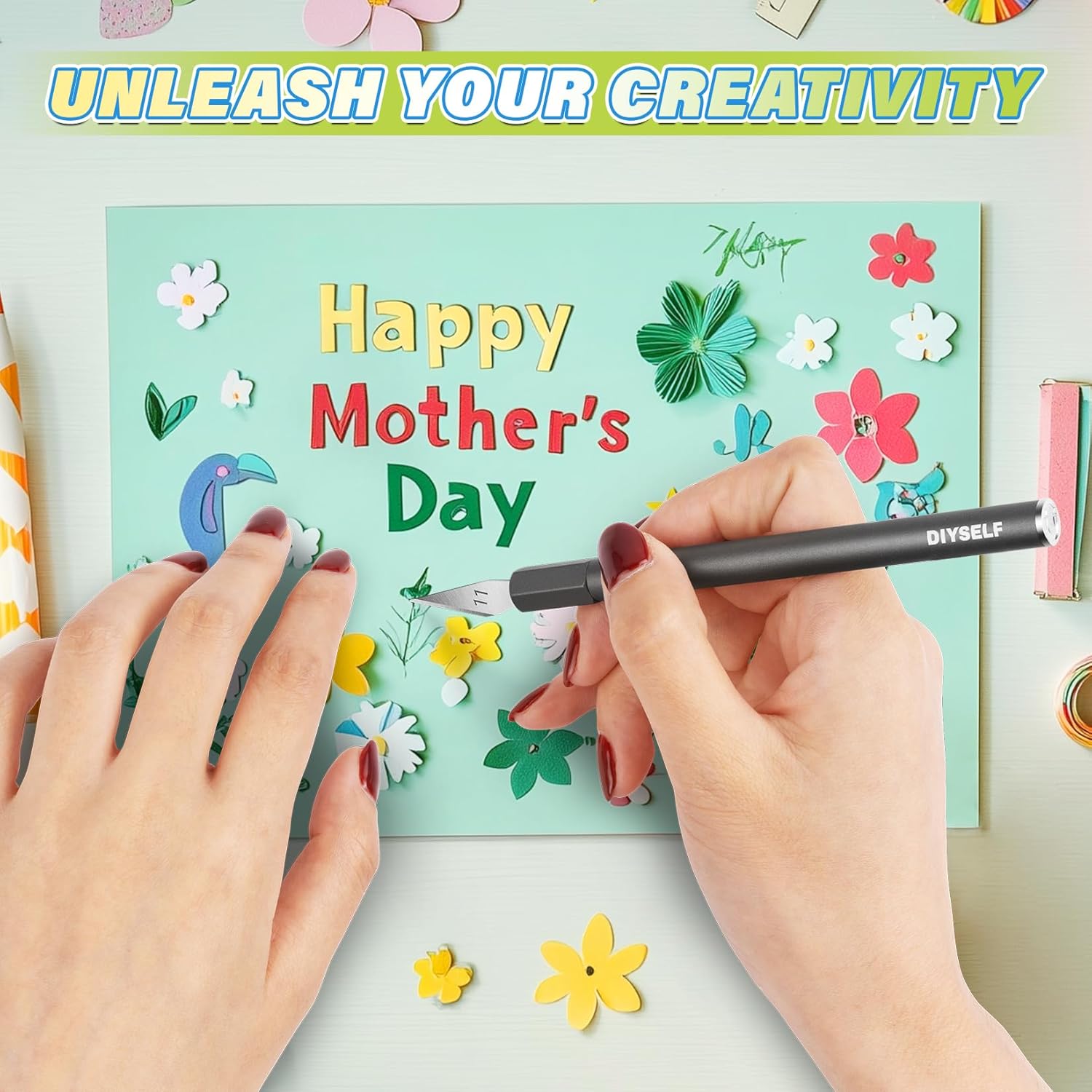 - Stylish and Satisfying: Our precision knife combines fashion and functionality. The compact storage case keeps your knife and blades organized and easily accessible, perfect for on-the-go use. A protective cap helps safe storage by preventing accidental scratches. The diamond-shaped grip provides a secure hold and keeps the knife from rolling off surfaces. With its elegant cosmic gray finish, our knife is both visually striking and skin-friendly, adding a modern touch to your crafting tools.