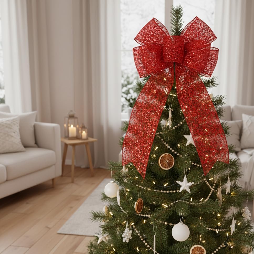 CT CRAFT LLC Sparkling Glitter Mesh Wired Ribbon 4" x 10 Yards Red for Christmas Home Decor Bow Gift Wrapping DIY Crafts Wreath