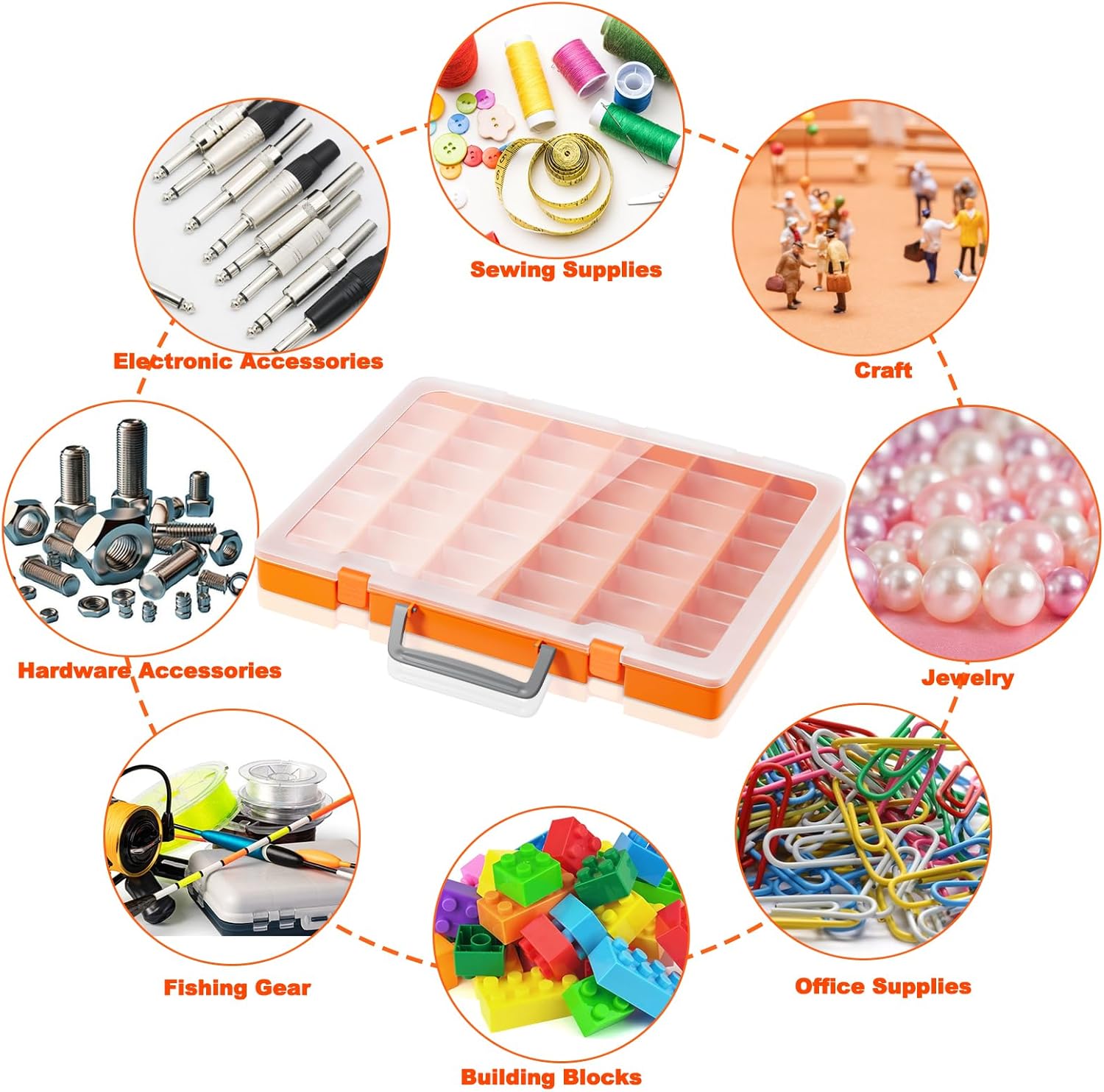 - Widely Applicable: This large capacity plastic organizer box is very suitable for storing handicrafts, beads, fishing gear, jewelry, earrings, office supplies, buttons, sewing thread, or other small items.