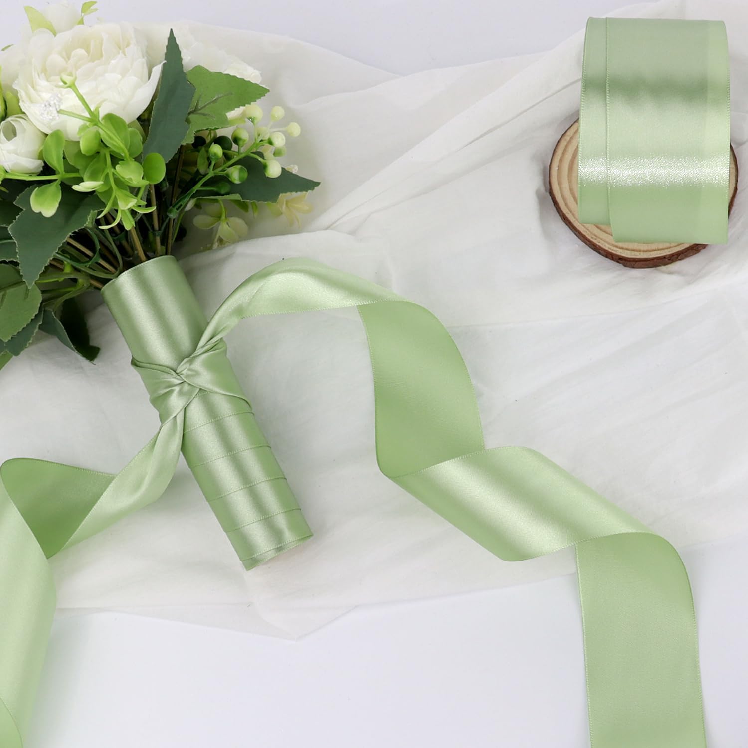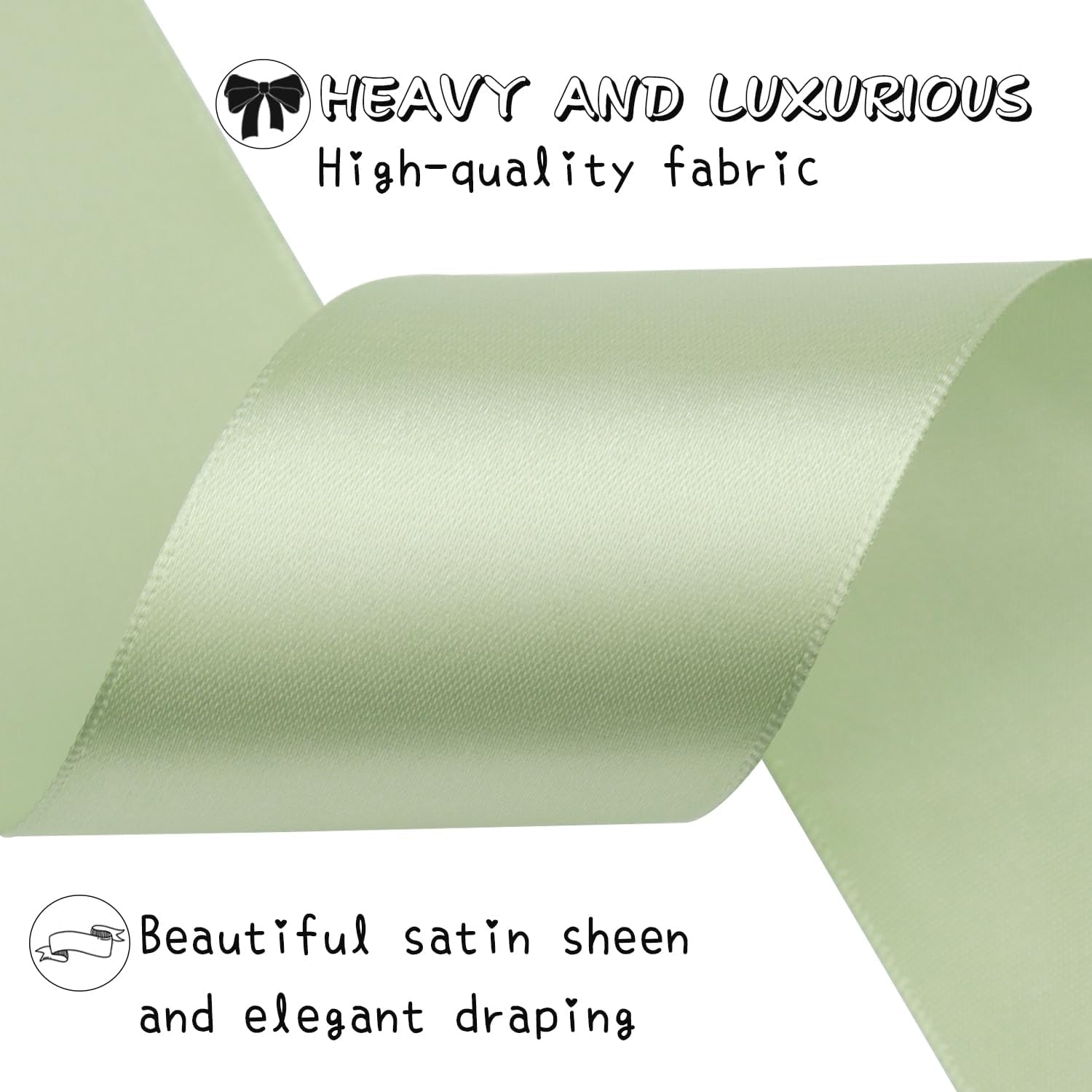 Pale Green Solid Satin Ribbon 2 Inch 25 Yards Solid Polyester Fabric Ribbon for Gift Wrapping Wedding Christmas Baby Shower Birthday Party Decoration Handmade Immortal Flower Craft