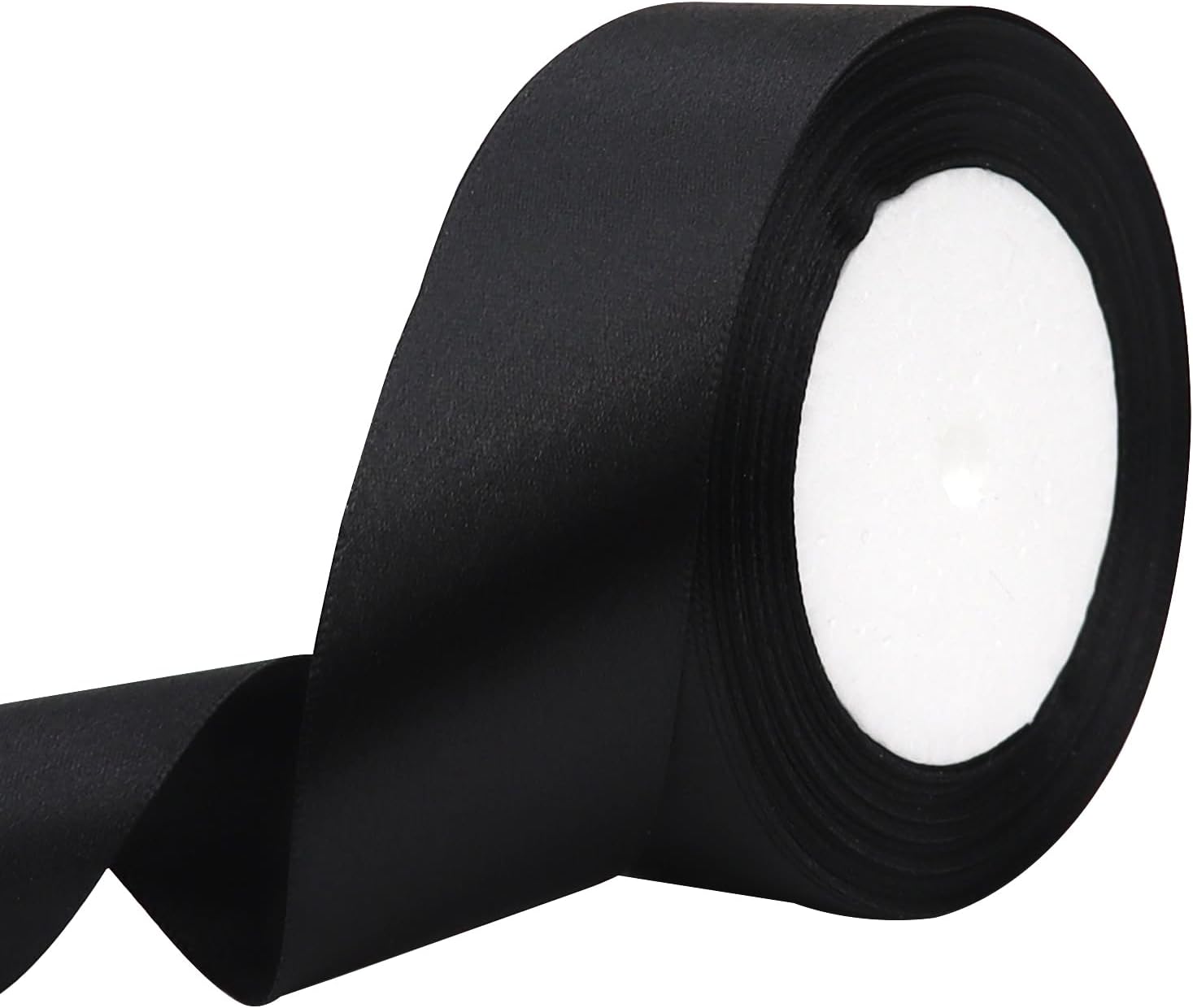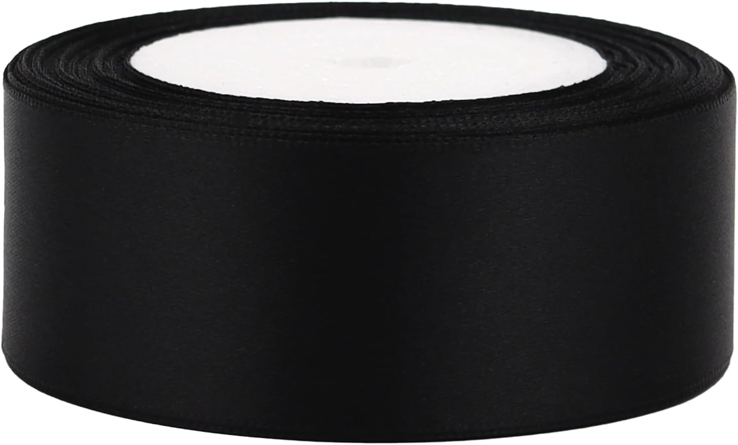 Black Solid Satin Ribbon 1-1/2 Inch 25 Yards Solid Polyester Fabric Ribbon for Gift Wrapping Wedding Christmas Baby Shower Birthday Party Decoration Handmade Immortal Flower Craft