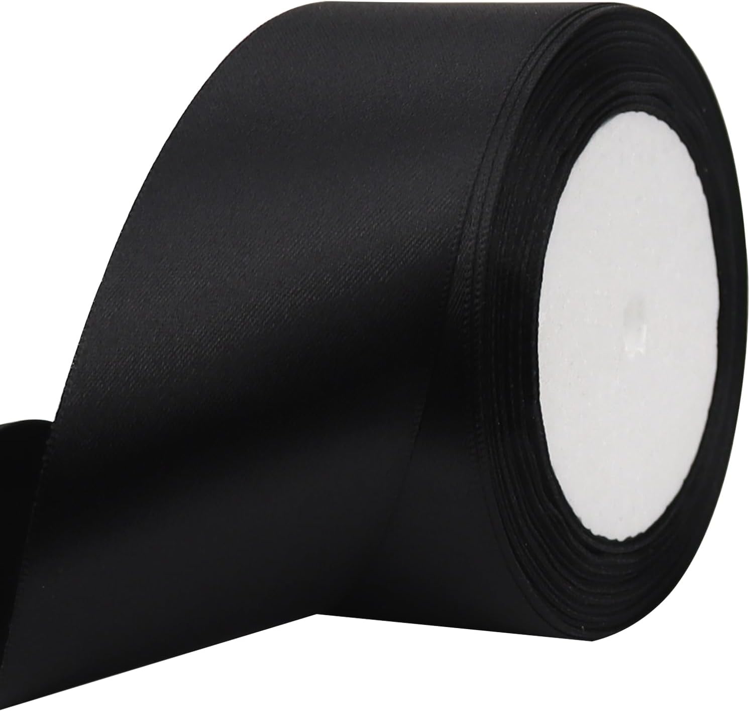 Black Solid Satin Ribbon 2 Inch 25 Yards Solid Polyester Fabric Ribbon for Gift Wrapping Wedding Christmas Baby Shower Birthday Party Decoration Handmade Immortal Flower Craft