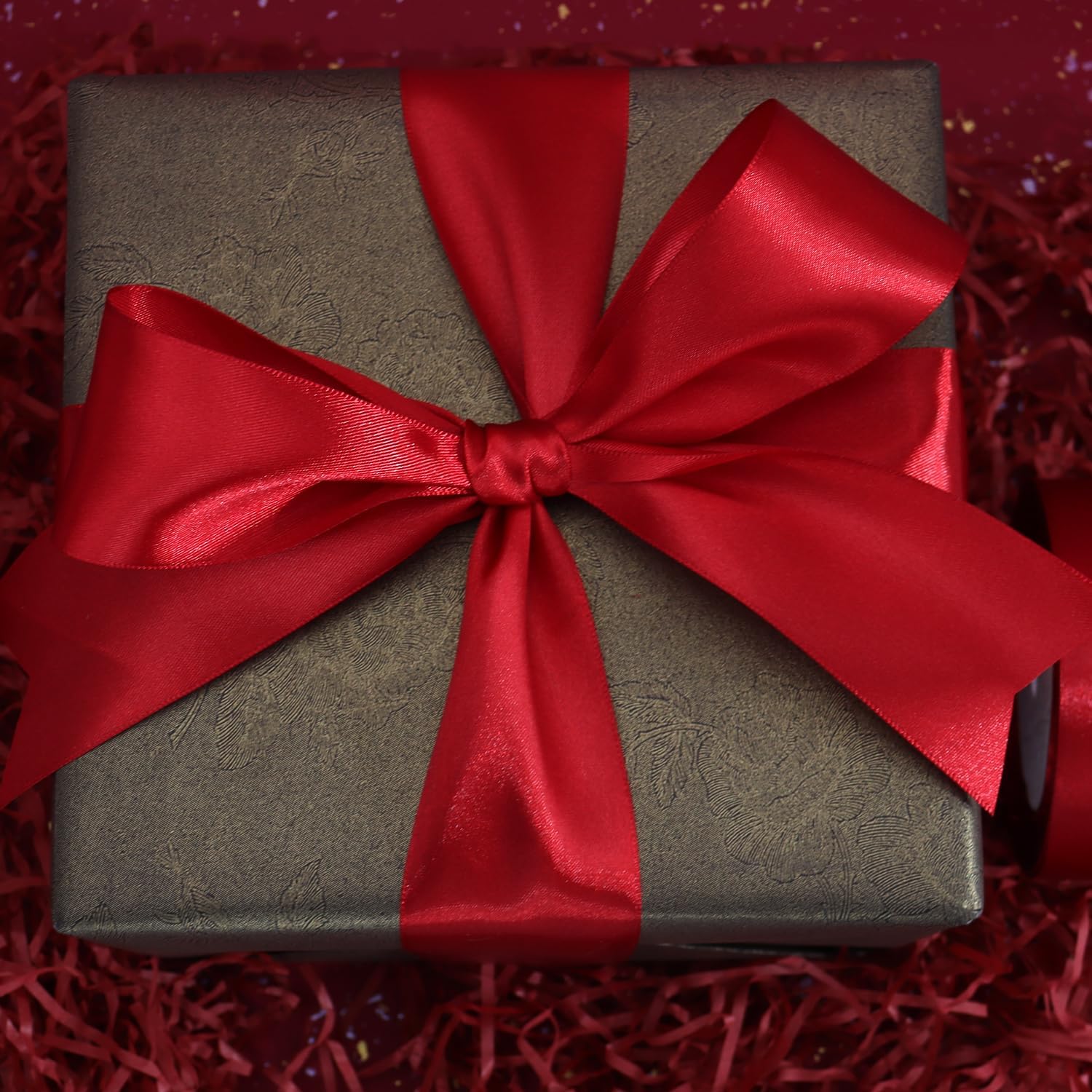 Deep red Solid Satin Ribbon 2 Inch 25 Yards Solid Polyester Fabric Ribbon for Gift Wrapping Wedding Christmas Baby Shower Birthday Party Decoration Handmade Immortal Flower Craft