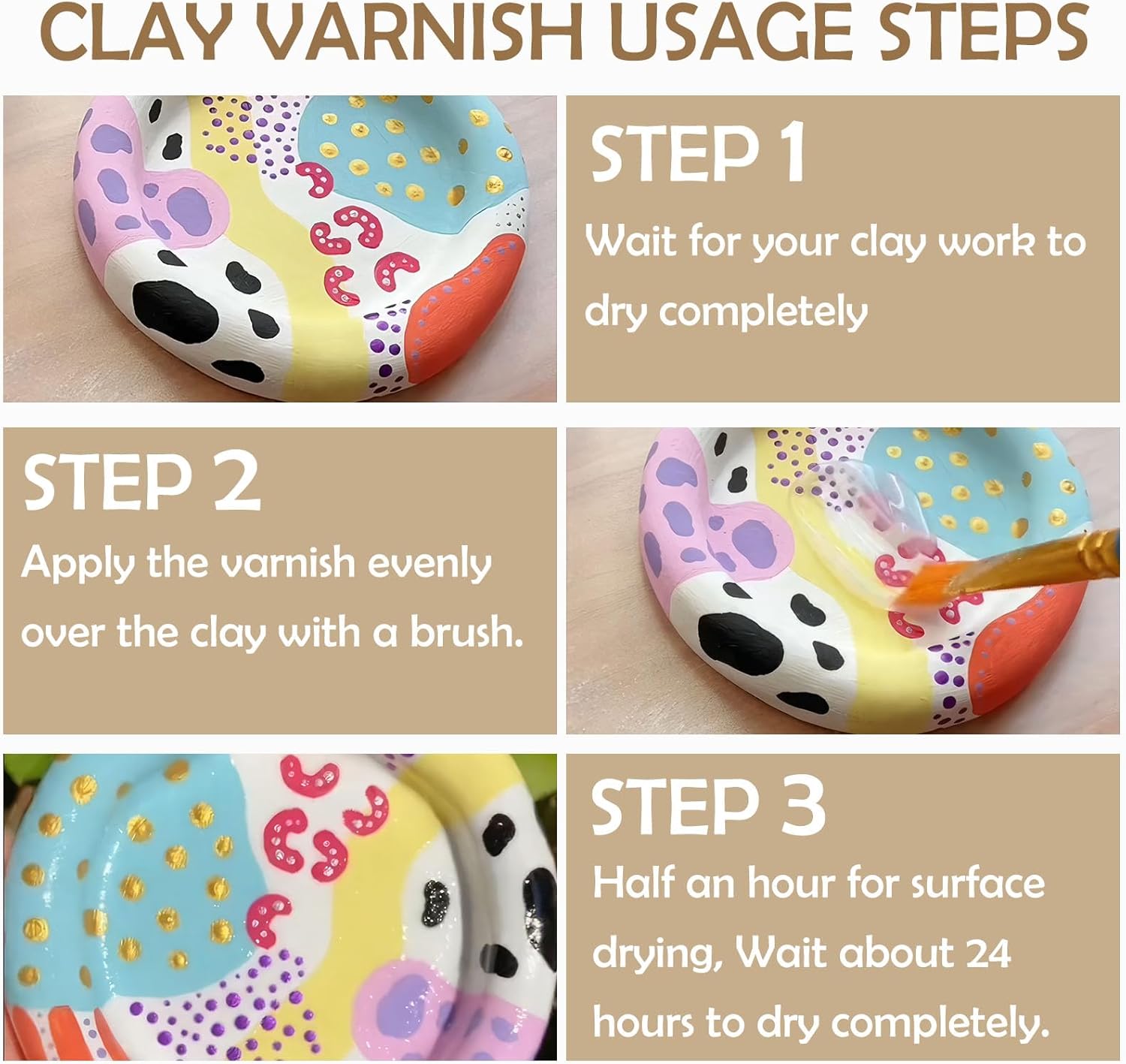 - Anti-Scratch & Glossy - The clay varnish for air drying clay dries quickly to a clear, shiny surface. clear coat for clay it protects your pottery well, and resists scratches; you can also get a beautiful gloss finish! It's a great surprise, give it a try!