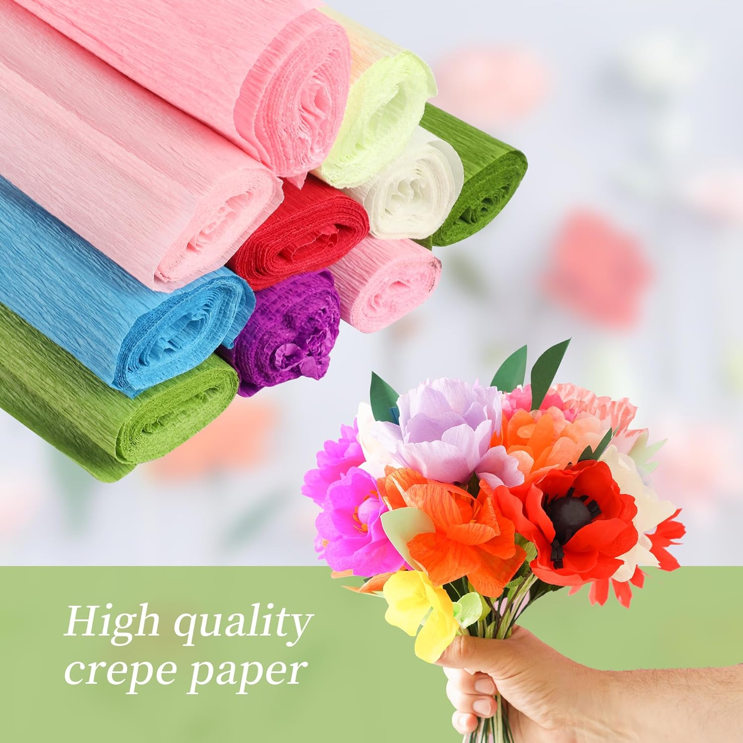 - 【Vibrant Colors】 We offer 20-color crepe paper rolls for you to use, and these colored papers can create long-lasting and beautiful bouquets.