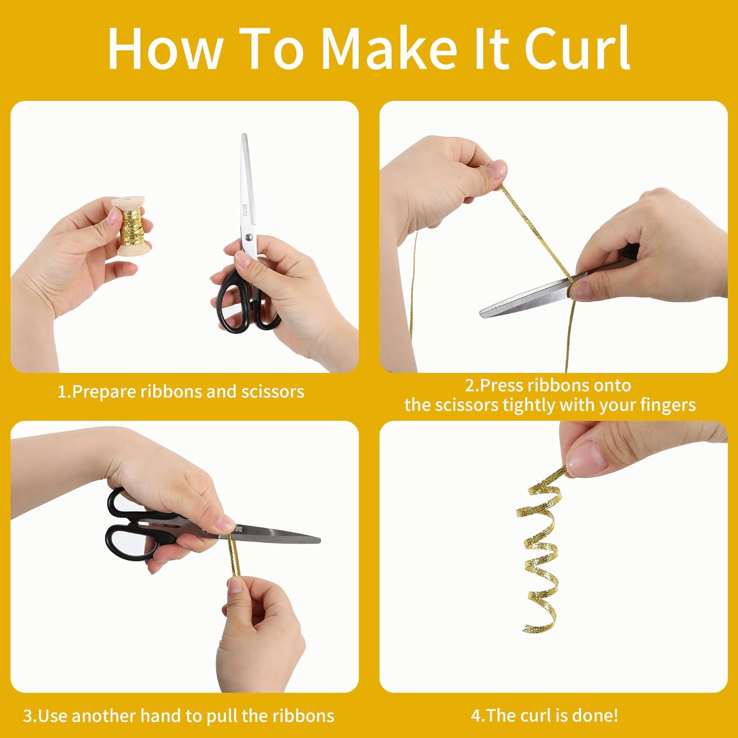 - 【VARIOUS USAGE】 Metallic braided ribbon is perfect to add a little sparkle to your weddings, parties, and birthdays. Perfect for gift wrapping, DIY, hanging tags, Christmas ornaments, baking crafts, hair bows, graduation, and New Year's decorations. You can use a pen or fingernail to curl the ribbon for various crafting purposes. Ideal for all crafting and sewing needs.