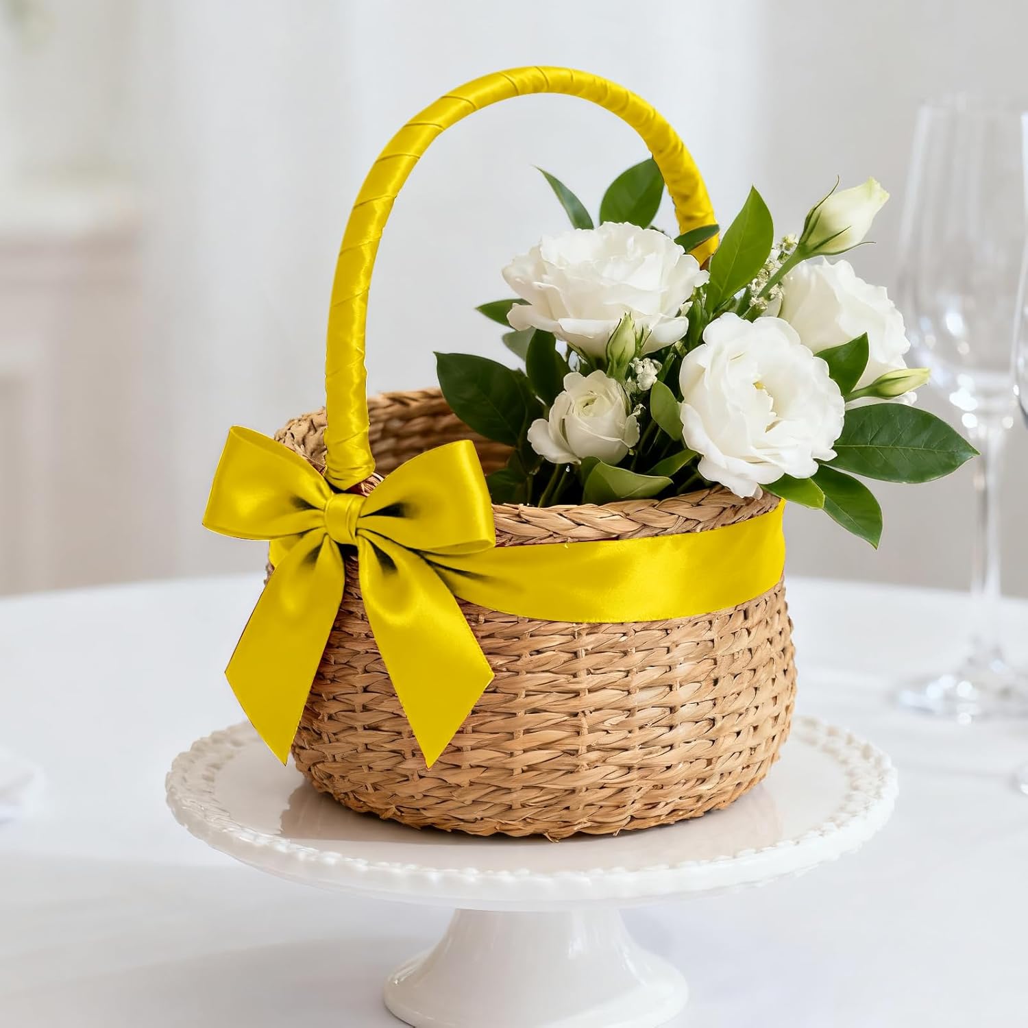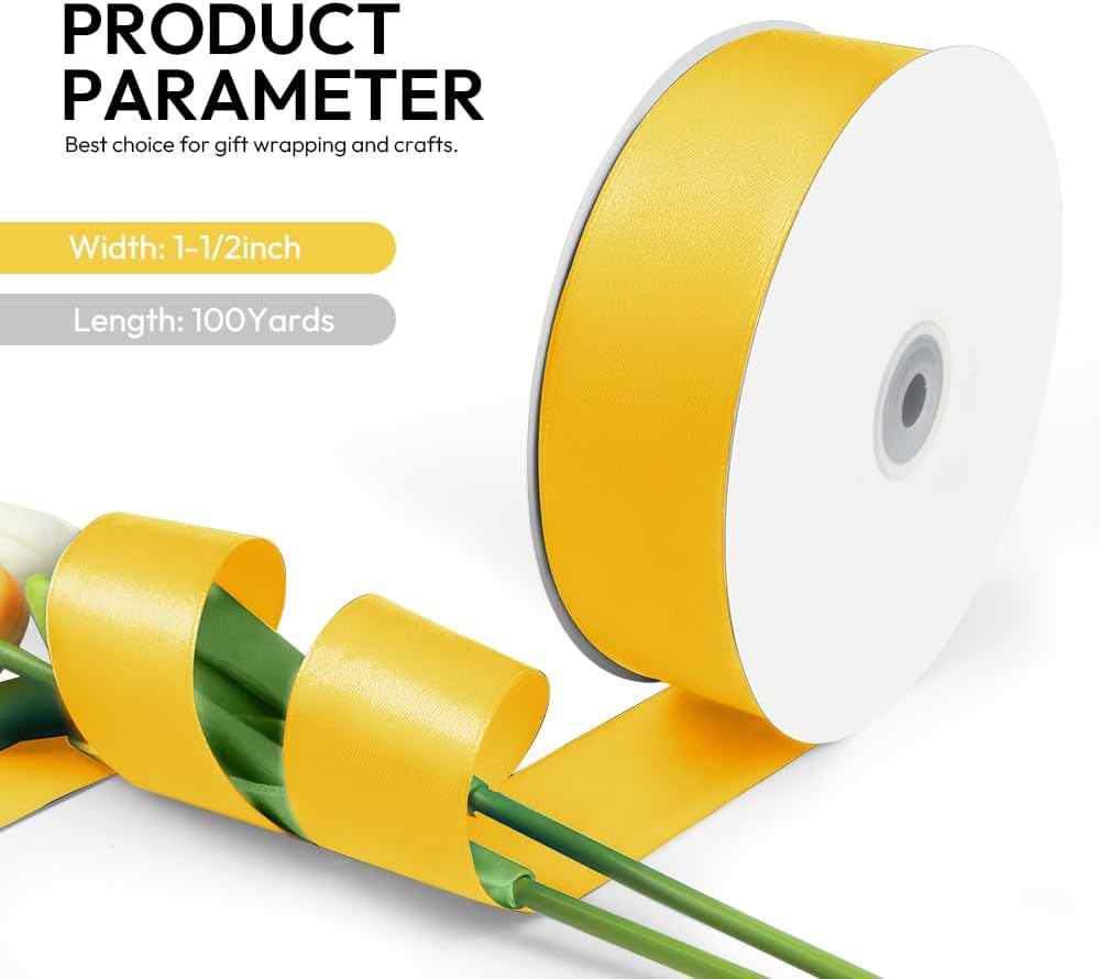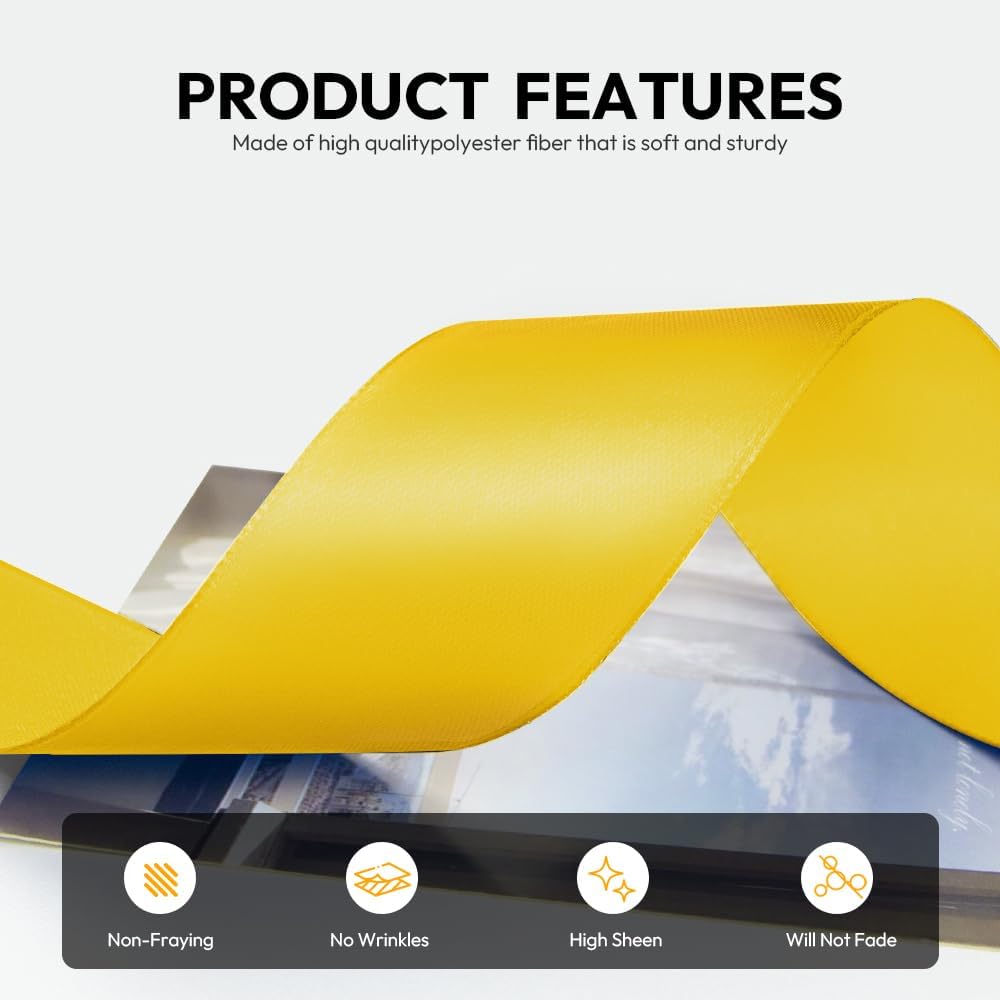 - 【High Quality】: Our fabric satin ribbon is made of 100% high-quality polyester. The single face ribbon for gift wrapping is Yellow color and has smooth texture which is easy to cut and use.