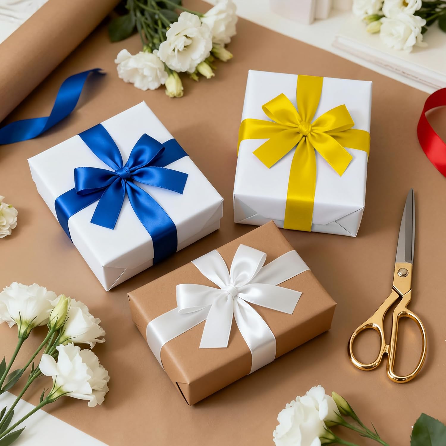 - 【Multiple Colors】: The gift wrap ribbon roll has multiple colors and will not fade easily. The durable gift ribbon can be designed in various palettes to apply in occasions like birthday, wedding, party, holiday decorations, home coming, anniversary, baby shower, family gathering and more.