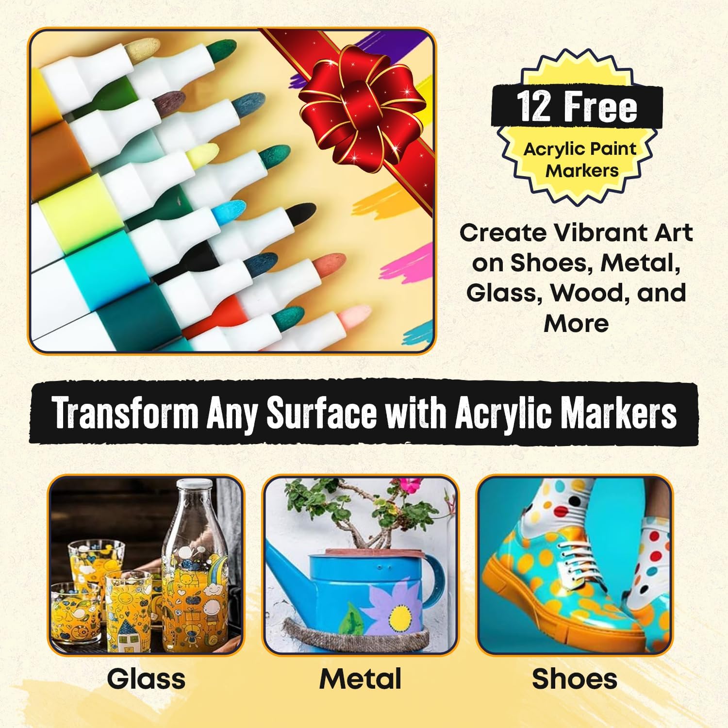 - BRING ART TO EVERY SURFACE: As a bonus, youβll receive 12 free alcohol ink markers, perfect for crafting on various surfaces like ceramic, glass, and wood. Expand your creative possibilities and add mixed-media projects to your artistic collection