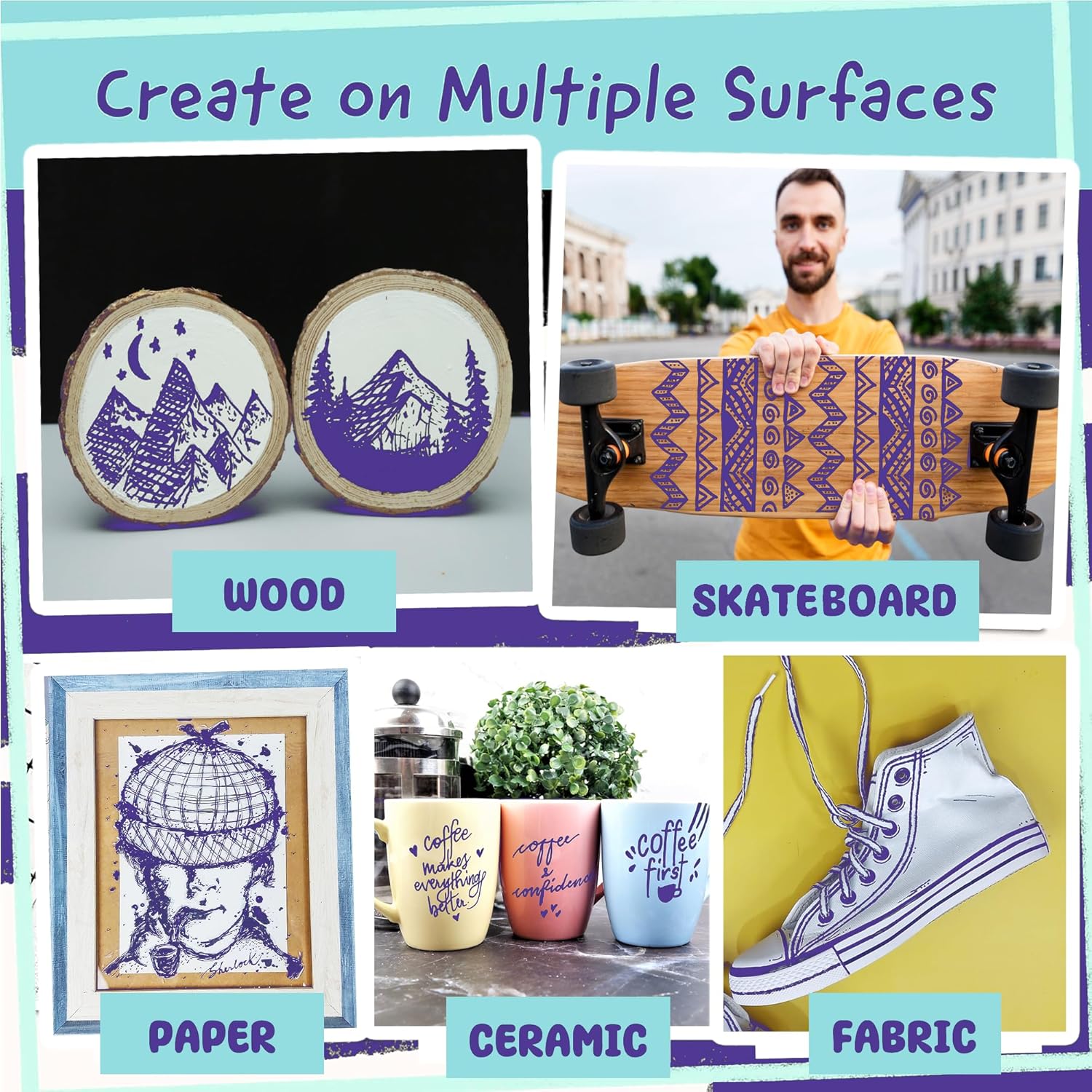 - Multiple Use Acrylic Markers - Get creative with DIY crafts using these paint marker for canvas, fabric paint pen, metal, porcelain, plastic, stones, polymer clay, wood, as acrylic paint pens for rocks painting, paint marker for metal