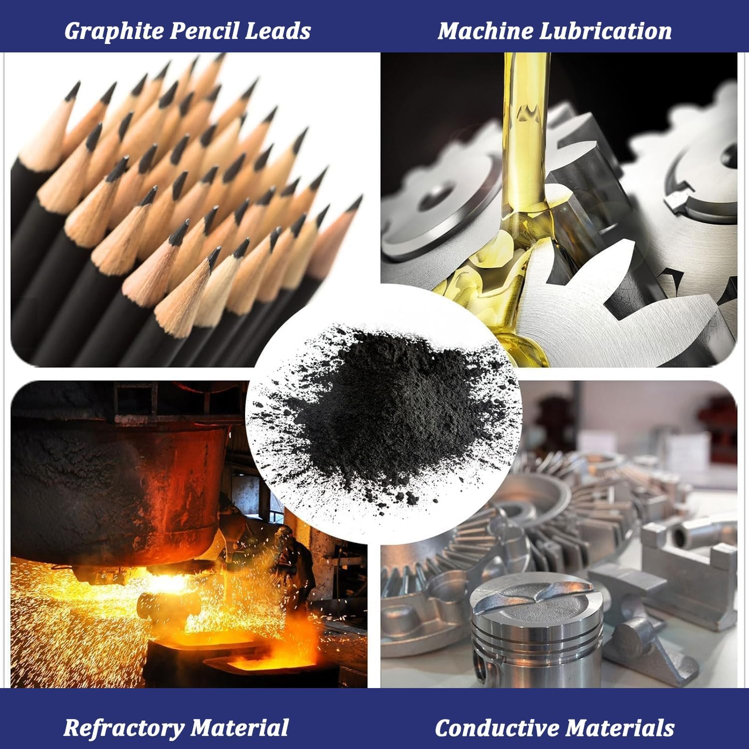 - Multi-use:Graphite powder can be used with epoxy resin to improve wear resistance and can be mixed with clay to make a heat-resistant crucible.
