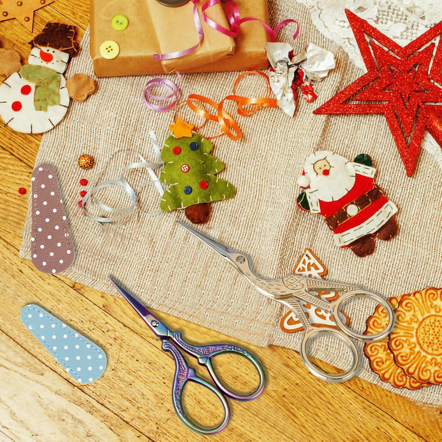 - Package of scissors:small sewing scissors and leather scissors safe cover. suitable to be as a delicate gift for friends or families who love embroidery, DIY working, and keep children away from scissors.