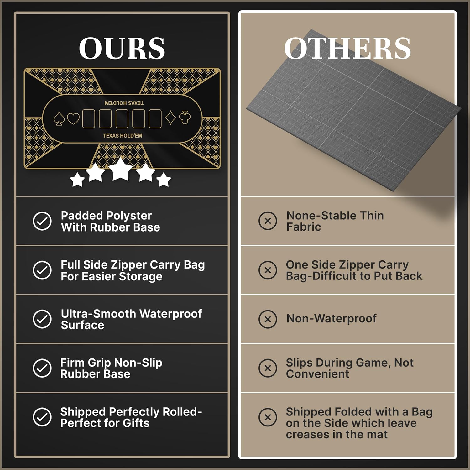 - STITCHED WITH PRECISION - Experience the difference in quality with our poker mat. From the stitching precision to the choice of materials, every detail is meticulously crafted to enhance your game.
