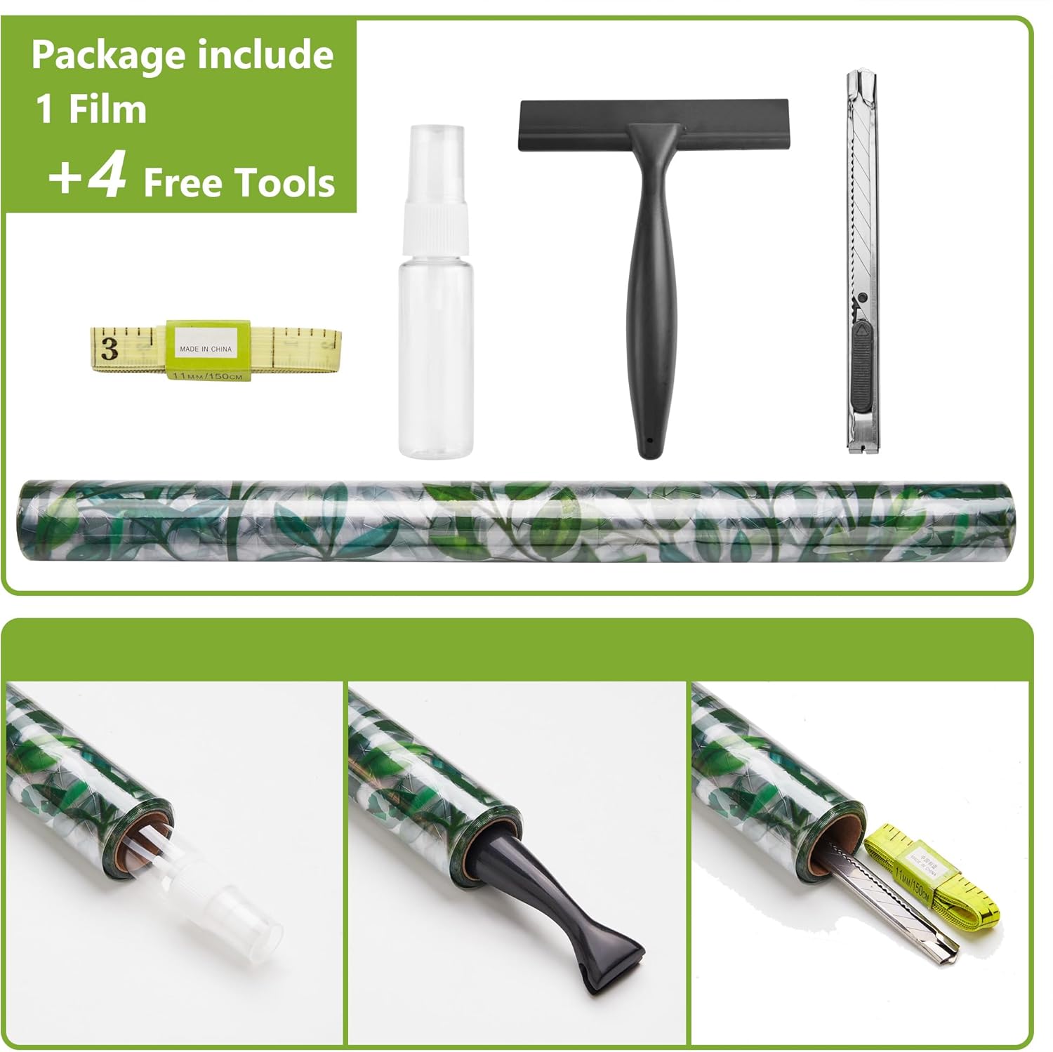 - Installation Tips:Window film can only be used on a flat, clean, smooth surface.Before sticking, it is necessary to clean the dust on the windows;When the back film is torn off during installation, a large amount of water is needed (the more the better);After installation, use a squeegeer to scrape away the bubbles in the window film to make it adhere effectively. If the edges are curled, try blowing them with a hair dryer or soaking them in warm water to soften them