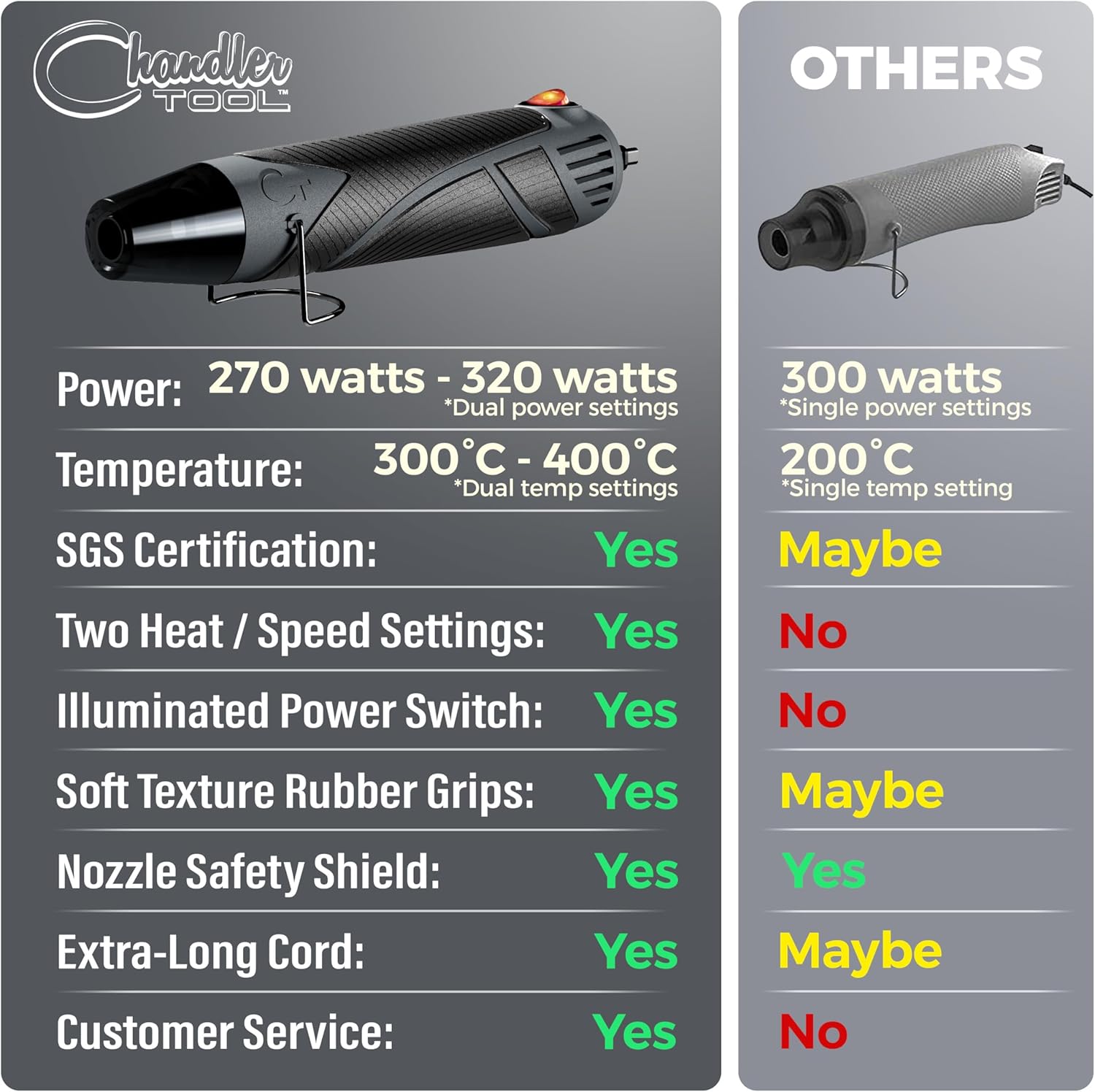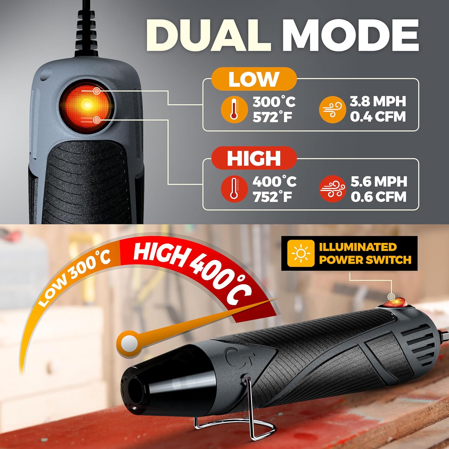 - ▶ Variable Speed & Heat: Our heat gun for crafts has dual temperature and speed settings - low speed & heat for delicate or detail work and high speed & heat for heavy duty or high volume work. It’s like having a mini heat gun and a full size heat gun in one!