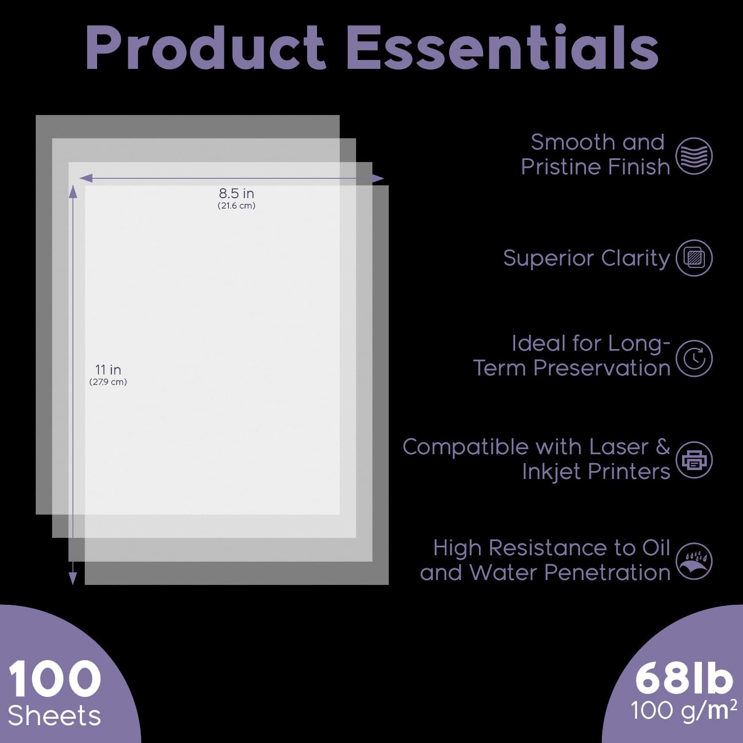- TRANSLUCENT VELLUM SHEETS Set of 100 Sheets: Sulfy high-quality vellum paper for all your arts and crafts needs. Each sheet of this tracing paper measures 8.5 x 11 inches, making it perfect for a variety of projects. The translucent paper allows for easy tracing and layering, providing versatility for your creative endeavors. Use this trace paper to enhance your scrapbooking, card making, and other paper crafts with a professional touch. Whether you are drawing, stamping, or creating overlays.