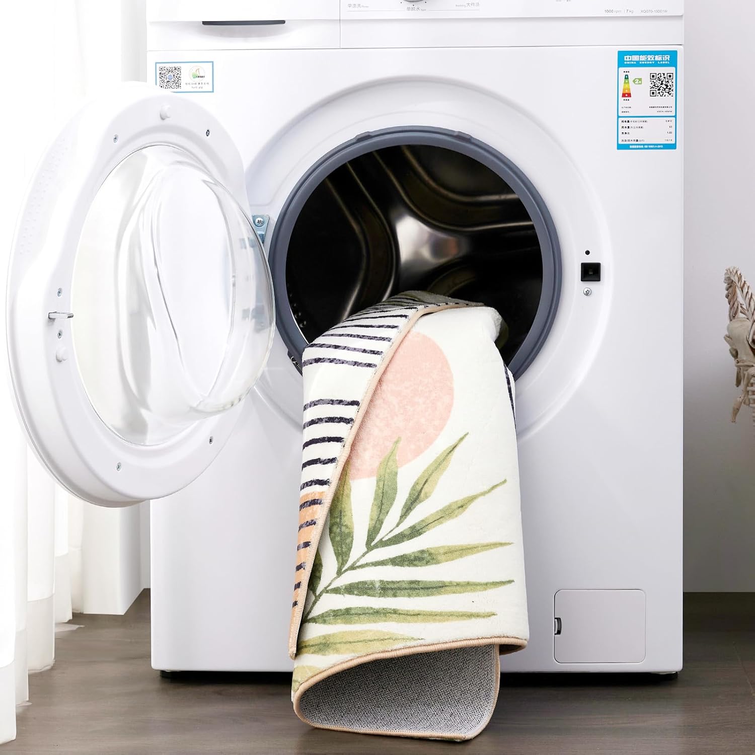 RoomTalks Mid Century Modern Washable Rug, Boho Cute Aesthetic 6x9 Area Rugs for Bedroom Dining Living Room Kitchen, Abstract Tropical Leaves Non Slip Thin Indoor Entryway Rug Accent Floor Carpet