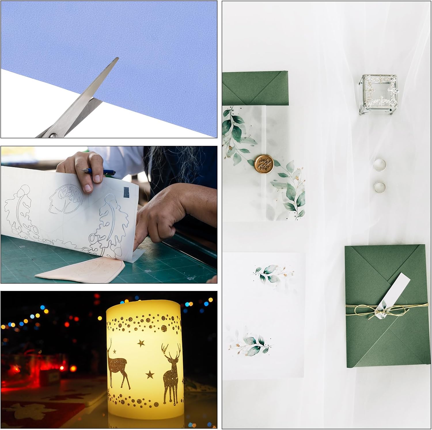 - Translucent vellum paper is suitable for creative wedding invitations, card inserts, invitations, photo covers, scrapbooks, rubber stamps, card making, table number cards, paper crafts, greeting cards, bookmarks, DIY vellum jackets, etc. It is suitable for weddings, birthdays, parties, Christmas gifts, etc.