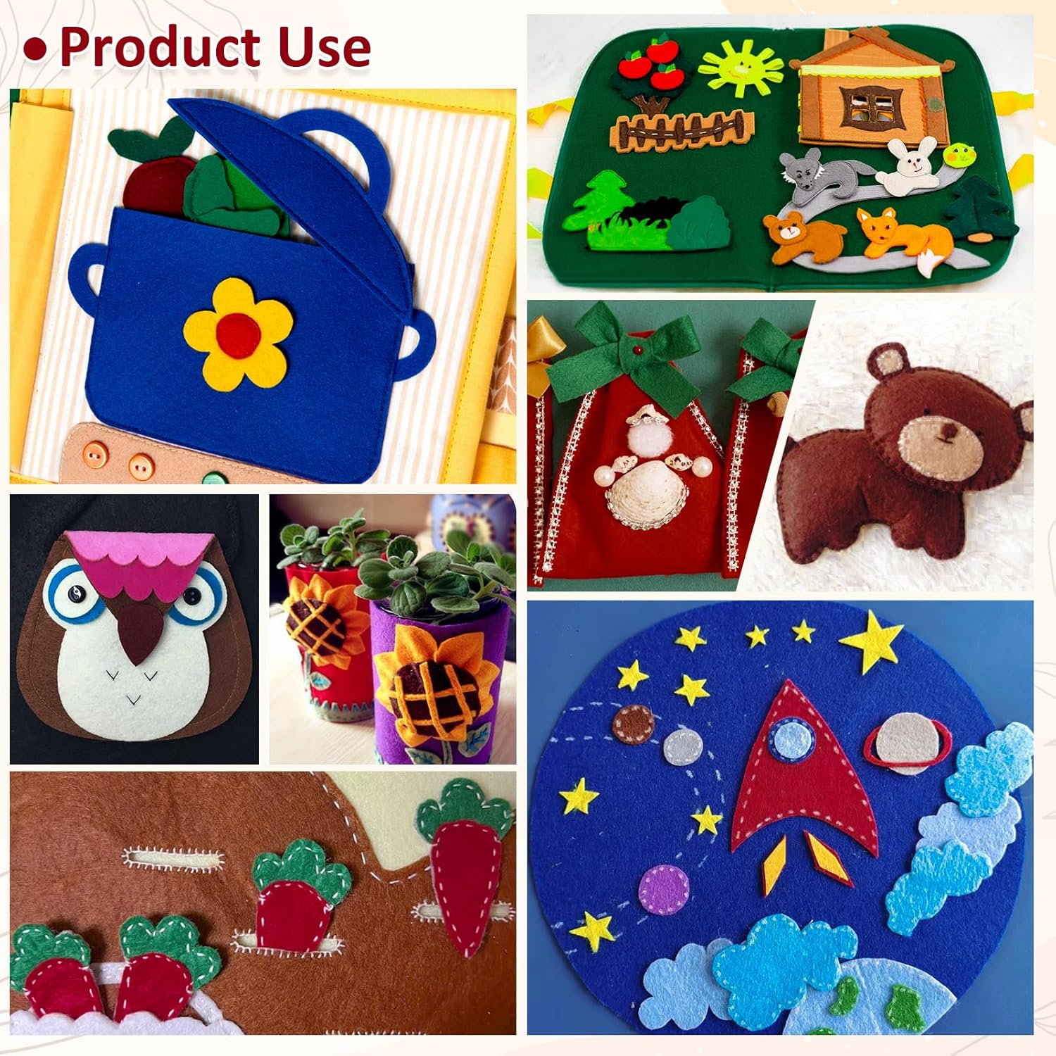 - 【Soft Felt Fabric】:This colorful non-woven fabric combination is a high quality polyester fiber material product.Soft felt roll is very easy to use, pre-cut into various shapes, easy to cut. And its softness is high because it does not wrinkle or lose its shape. Therefore, it is widely used in various sewing felt sheets for crafts product.