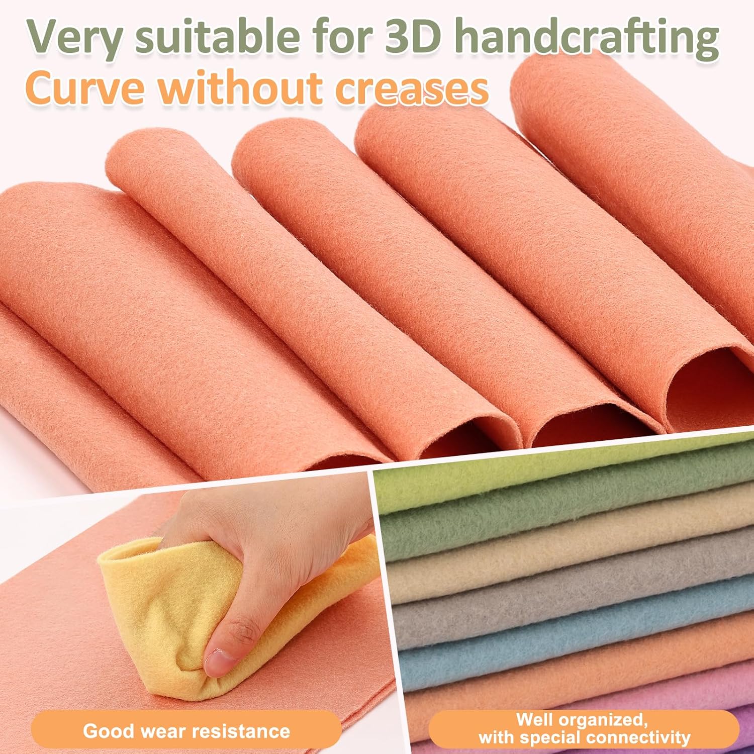 - 【Soft Felt Fabric】:This colorful non-woven fabric combination is a high quality polyester fiber material product.Soft felt roll is very easy to use, pre-cut into various shapes, easy to cut. And its softness is high because it does not wrinkle or lose its shape. Therefore, it is widely used in various sewing felt sheets for crafts product.