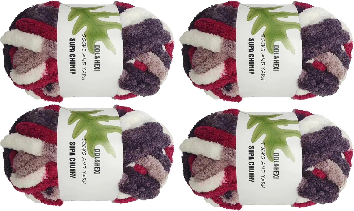 DDL&HEXI 4 Pack Super Chenille Chunky Yarn for Hand Knit, Blanket Making Kit, Jumbo Knitting, 4x8oz (226g) per Bag, Soft Polyester for Crochet, Knitting, and DIY Projects(241-4)