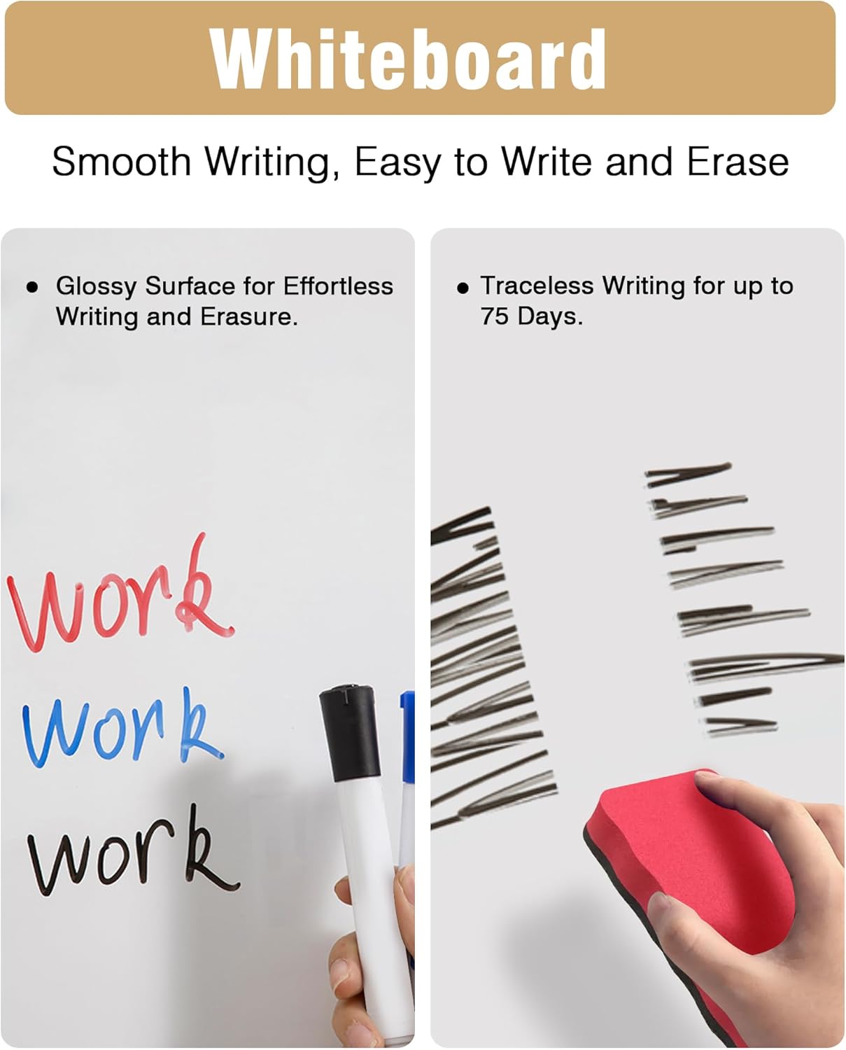 - 🌟✔【Durable Whiteboard Surface】: The high-quality whiteboard surface allows for repeated writing and erasing, ensuring long-term clarity. Its smooth surface enables easy, ghost-free erasing, keeping your board looking clean and professional.