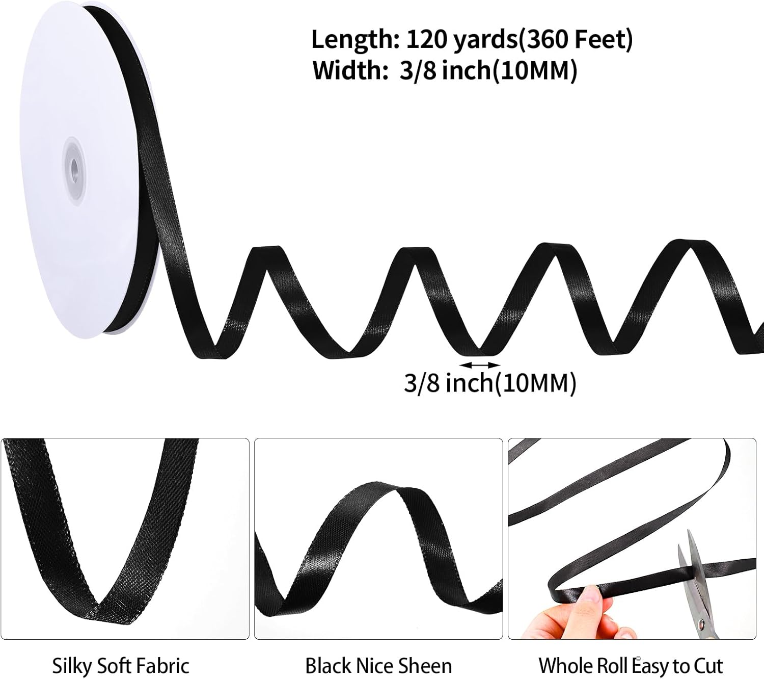 - 【Size Information】This black ribbon is 3/8 inch(1cm) wide and 120 yards long; it is enough length for you to cut it at will to meet different decorative needs, each roll come with plastic spool and protection paper on two side, so it's easy to storage